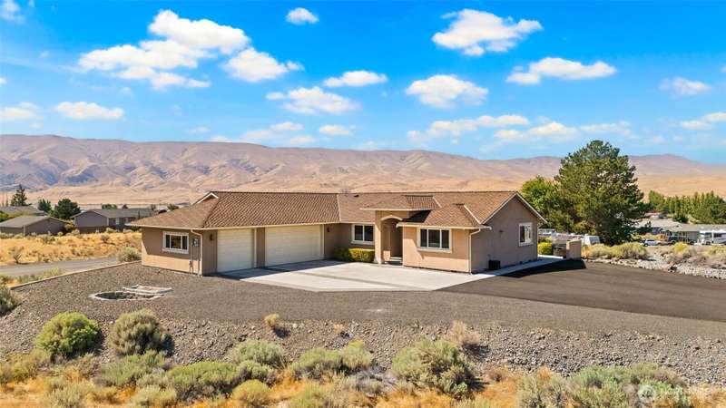 Perched up in the hills of Desert Aire in Mattawa and with breathtaking views in practically every direction, this custom Kleinschmidt built 1,901 square foot move-in-ready home has one of the best views in the area and is ready for new owners. The expert craftsmanship and attention to detail in this 2007 build can immediately be seen upon driving up to the home. Resting on an oversized and meticulously maintained lot, this hard-to-find property has natural lighting pouring inside from the skylights and vinyl windows as soon as you walk through the front door of this 3-bedroom, 2-bathroom home that includes an office area as well. You will immediately observe high ceilings and so much more that needs to be seen in person to appreciate!