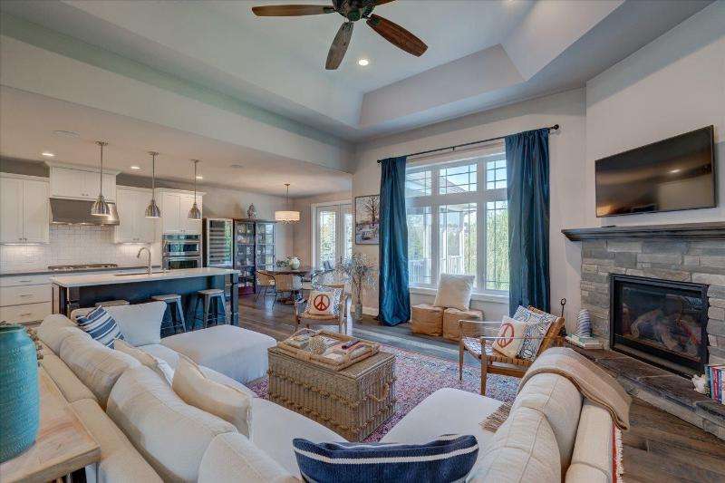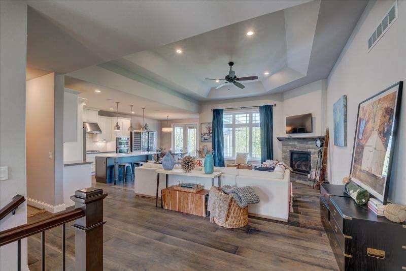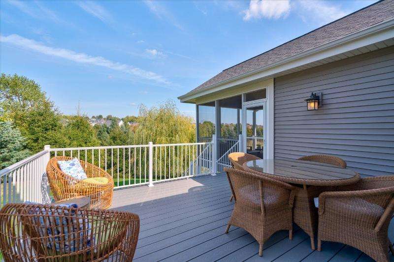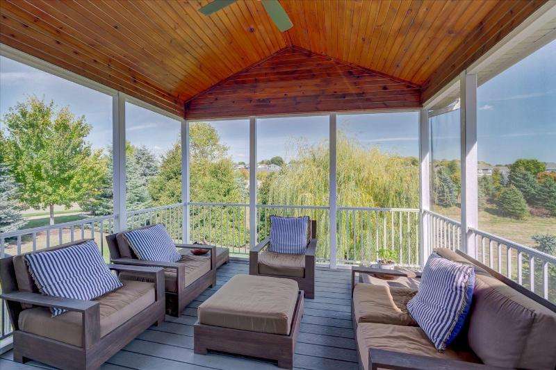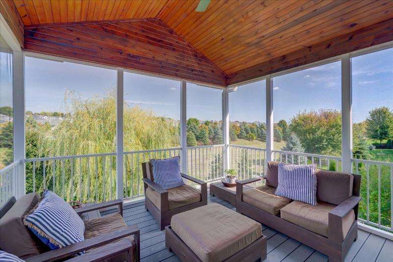 Spectacular ranch style home set on a beautiful lot with large trees and private vistas overlooking mature greenspace. Rare opportunity available if you cherish a serene setting! Enjoy the elevated screened porch with pine ceiling and a maintenance free deck, perfect spot all ready for a hot tub. Wonderful open floor plan offers split bedrooms, beautiful great room with a soaring ceiling, gas fireplace, wood floors. The gourmet kitchen boasts quartz counter tops, huge island, tiled backsplash, walk-in pantry, upscale appliances. FF primary suite featuring tray ceiling, walk-in-closet, spa bath with double vanity, walk-in shower. Walk-out lower level, amazing great room, wet-bar, grand fireplace, exercise room, two additional bedrooms and work out room too. Close walk to pool and tennis.