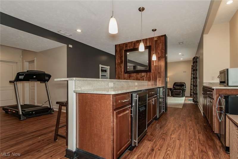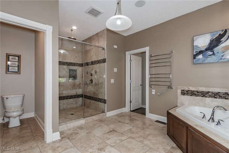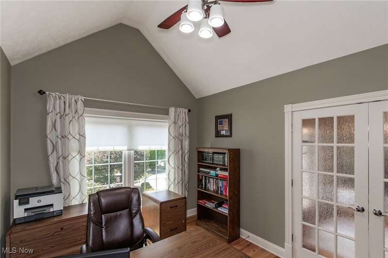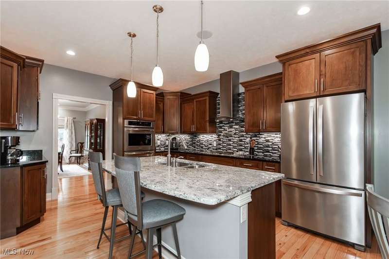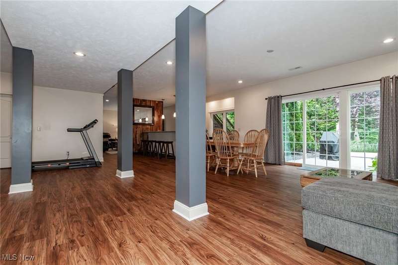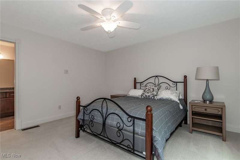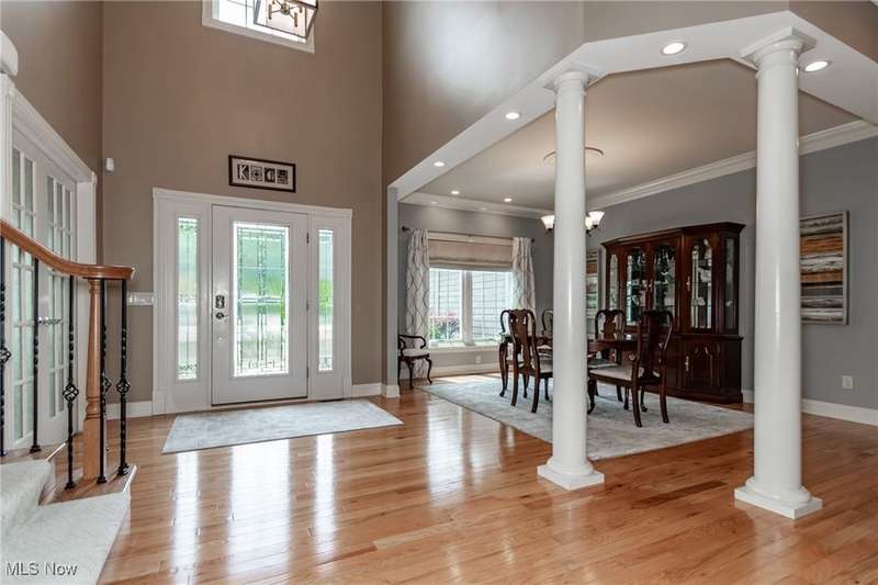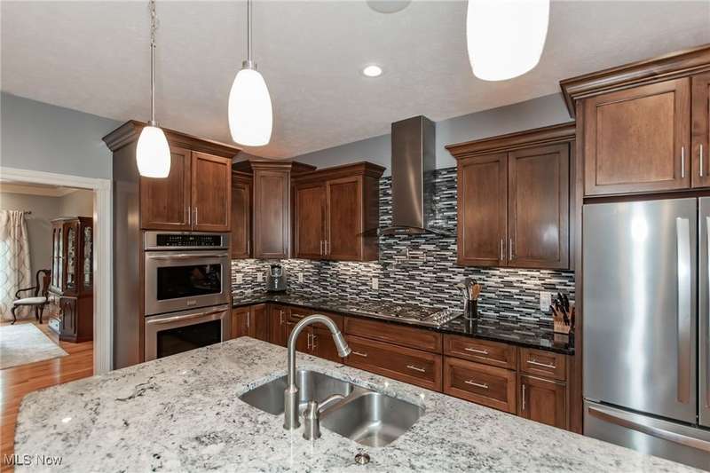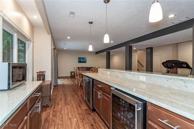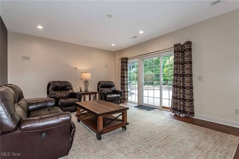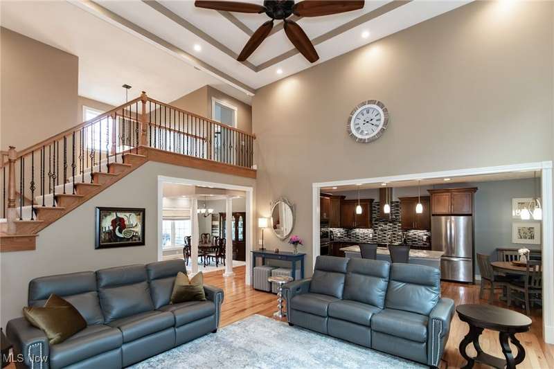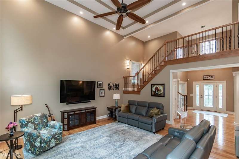 Gorgeous contemporary home with 1st floor primary bedroom and 1st floor den nestled on a beautiful one acre culdesac private lot. 4871 sqft of living space with open floor plan and soaring ceilings will entice you to call this your dream home! The first floor is impressive with a 2 story great room with fireplace, chef's kitchen with granite counters, large island/breakfast bar, walk-in pantry, double ovens, and spacious eat-in area that leads to the screened-in porch. The primary bedroom has private entrance to the porch and is stunning with high ceilings, luxurious bath with custom tiled shower, soaking tub and custom walk-in closet with extra vanity area. The formal dining room, den, half bath, and laundry complete the first floor. The second level comes complete with 4 spacious bedrooms each connected to full baths. You'll love entertaining in the walk-out lower level with spacious family room with fireplace, media space, wet bar with 2 beverage coolers, full bath, 2nd den or possible 6th bedroom, and large storage area with walk-up to the 3 car garage. 2 sets of sliders lead to 2 patio areas, gas plumbed fire pit and a peaceful water fountain all surrounded by private tree buffer for privacy. The whole house sound system is included and enhances the entertaining experience! You won't be disappointed to see this incredible home!