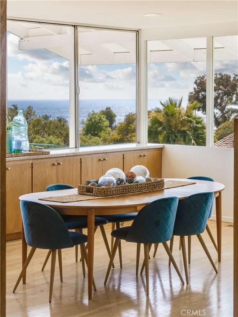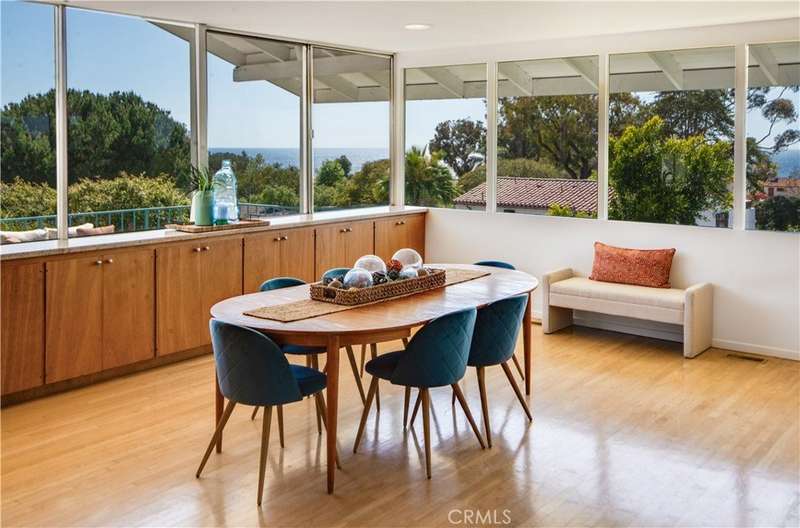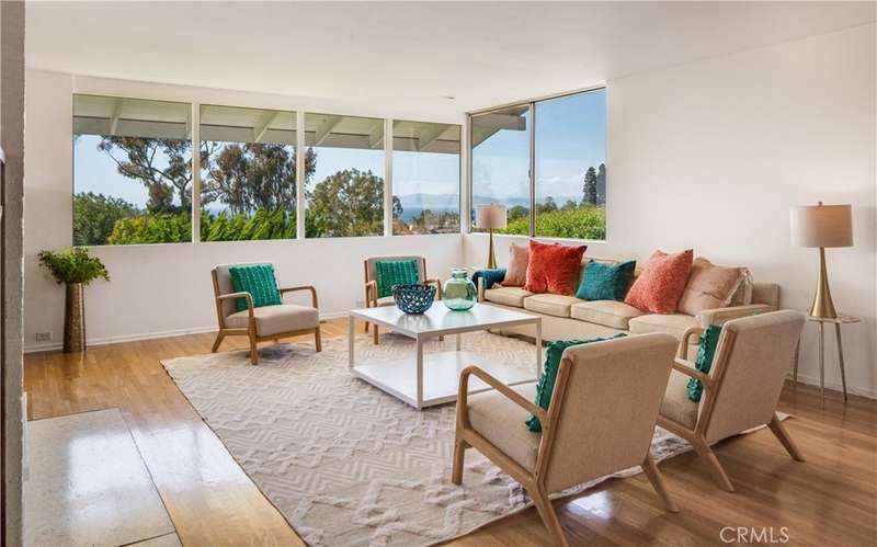 Masterfully crafted Mid-Century Modern home that embraces the true art of design. Located in the beautiful Lunada Bay area of Palos Verdes Estates and designed to take advantage of the exceptional views of the ocean and bucolic landscape through the extensive use of large banded windows and simple geometric forms. Designed by Architect Jack Ouzounian in 1963 and built as a piece of art by the original owner. The home is characterized by large open spaces that flow seamlessly into one another, this design utilizes smooth museum-quality plaster walls, hardwood and terrazo floors and custom mahogany cabinetry to create a warm environment that is minimal and without excessive ornamentation. The detailing is simple but impeccable, for example, many of the doors are eight feet high and are crafted precisely so that they are void of trim and casings. Daylighting is a key feature. Large windows that extend to the ceiling flood the interior with natural light while emphasizing the connection to nature; and the expansive south-facing deck serves as an "outdoor living room" that wonderfully compliments the indoor environment. A truly special place to call home.