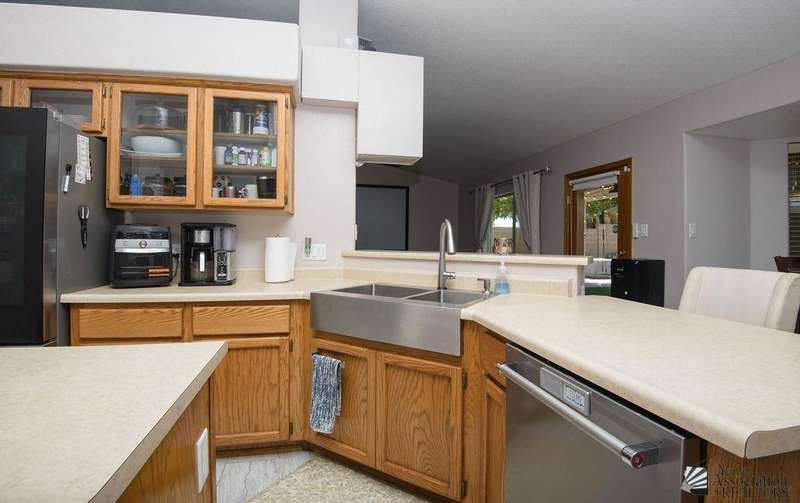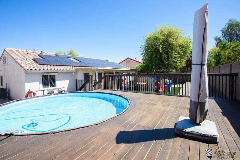 This 5-bed, 2-bath home packs over 2,000 sq ft of comfort and style. With vaulted ceilings, a split floor plan, and a kitchen built for cooking (island, farm sink, pantry, newer fridge), it’s ready for daily life and entertaining. The primary suite brings the spa vibes with a jetted tub, while updates throughout add modern touches. Step outside to turf, mature trees, paver patios, and a pool with custom deck, your own backyard getaway. Living your dream starts here.