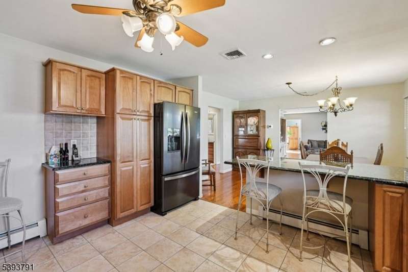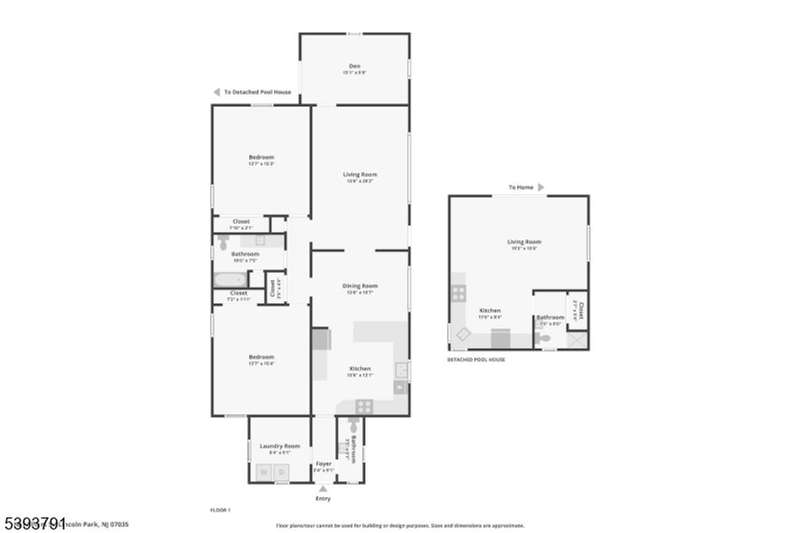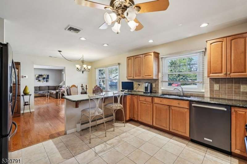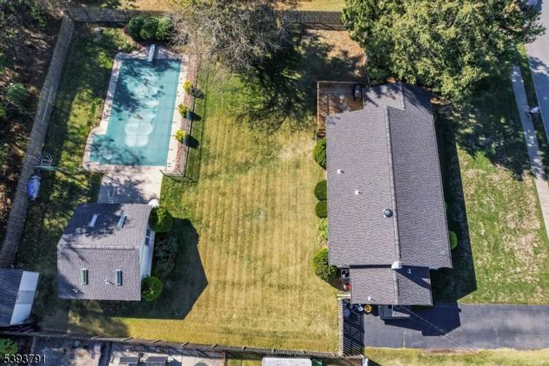 Welcome home to this beautifully maintained 2-bedroom, 1.5-bath Ranch nestled on a fully fenced, level lot in the heart of Lincoln Park. Step into the welcoming living room filled with natural light, offering a comfortable atmosphere that invites relaxation and connection. A large cased opening leads into the beautifully appointed dining room, an ideal setting for intimate meals or hosting gatherings. The dining room flows seamlessly into the eat-in kitchen, a home chef's dream featuring custom cabinetry, granite countertops, black stainless steel appliances, and bar seating. Just off the main living area the primary bedroom offers a large closet and is your personal retreat at the end of the day. The second bedroom also includes a generous closet. The den provides a versatile space perfect for a third bedroom or home office. A laundry room, full bathroom, and convenient powder room complete this thoughtfully designed single-level home. Sliding glass doors from the den lead to the spacious rear deck, ideal for outdoor grilling and al fresco dining, and overlooking a generous backyard with plenty of space for recreation and relaxation. Enjoy summer days by the in-ground pool, complete with a pool house retreat offering vaulted ceilings, skylights, a full kitchen, living room, and full bath, perfect for guests or bonus living space. Ample driveway parking and a prime location near NYC transportation, shopping, and dining make this home the total package.