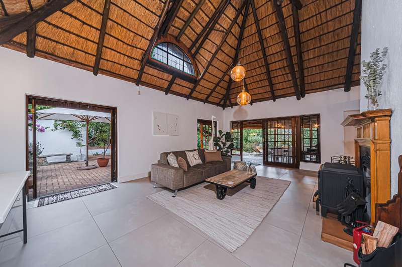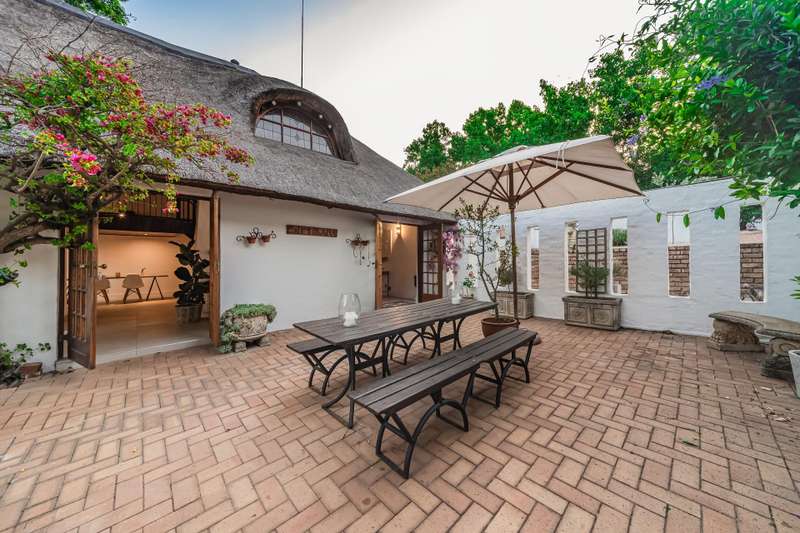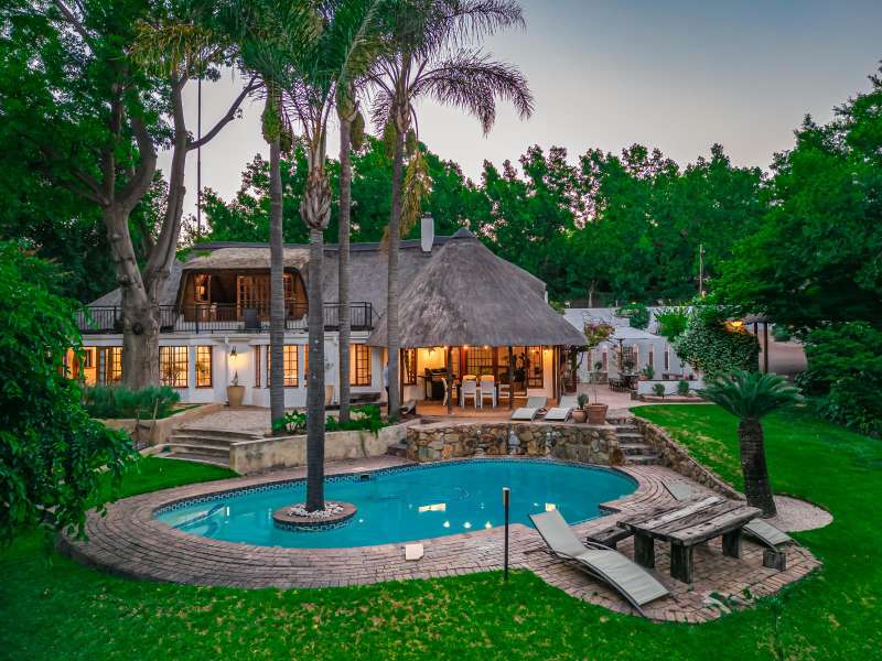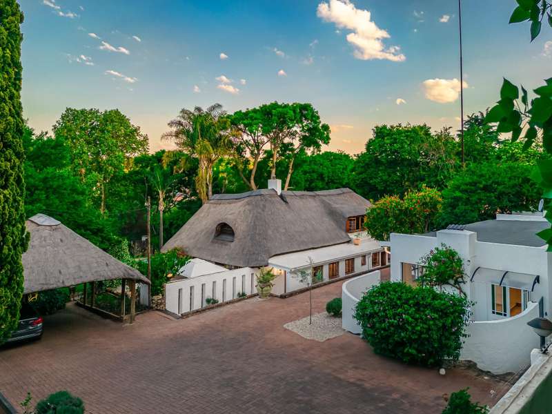 Prime location in a gated street protected by the 24hr manned access controlled security. Seller asking R 4299 000. The only thatch exposure internally is the double volume lounge in this ?Ç£Country Home ?Ç¥ in the heart of Sandton . Enjoy the privilege of the riparian water rights from the river automatically irrigating your vast array of fruit trees and vegetables. Here?ÇÖs an opportunity to live off the grid. Enjoy the rustic charm of this magnificent home on 2230m2 reveling in family moments and events. Two gorgeous cottages add to the country atmosphere with an external full laundry. The cottages are positioned to welcome an income supplement OR extended family. The cottages include the accommodation supplement.The huge driveway framed by olive trees, lavender and bougainvillea has ample space for parking. A welcoming large entrance hall leads past a traditional guest cloakroom into receptions . French paned oregan pine doors with stained glass lead out to covered and uncovered terraces with breathe-taking garden vistas including a resort style pool with a central palm. A beautiful giant morso is heart of the home in a vast double volume lounge. Ceilings throughout except the loft and lounge.Three bedroom wing face the garden frontage. Main en suite has a large individual dressing room. Stylish bathrooms. Ascend a magical mezzanine that is home to so many choices like playroom with plenty of place for sleepovers, office, TV family lounge spilling out on a terrace and balcony in awe of the magnificence of nature and birdlife. Traditional security controlled daily walks along the river have been enjoyed for years in the best kept secret in Sandton. A piece of paradise that exudes soul and vibrant energy. HOT off the PRESS Additional security measures are currently being phased that include AI cameras and street lighting during load shedding. One couldn't wish for a better safe haven driven by a dedicated community driven private street.