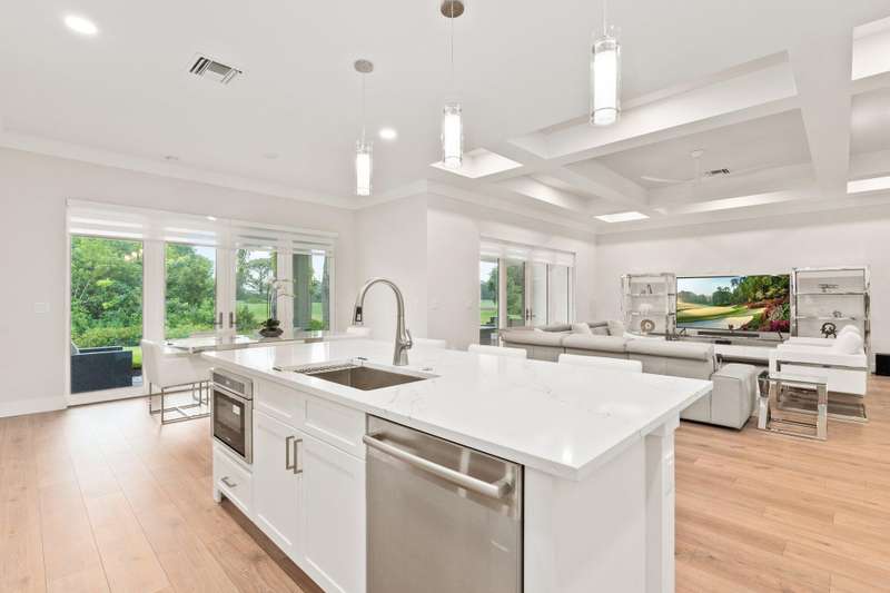 Welcome to this brand-new luxury home on the first hole of the Cape Club, where every detail blends elegance with comfort. Wide-plank wood floors lead you through open living spaces with coffered ceilings and crown molding, while natural light pours in through impact windows, framing serene golf course views.The chef's kitchen offers Bosch appliances, quartz countertops, and soft-close cabinetry -- the perfect setting for both quiet mornings and lively gatherings. The owner's suite is a private retreat with its own climate control, custom closets, and a spa-like bath featuring a soaking tub and separate shower.Step outside to your half-acre lot and take in the