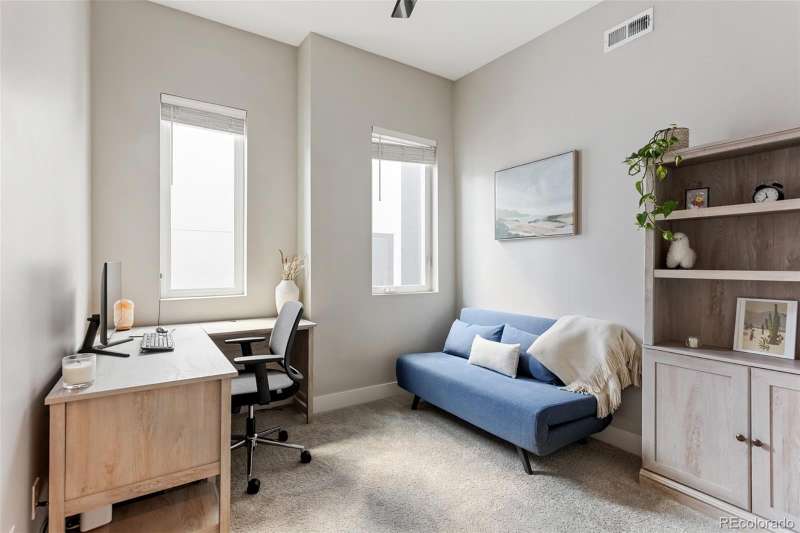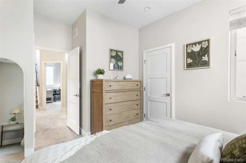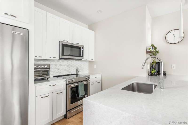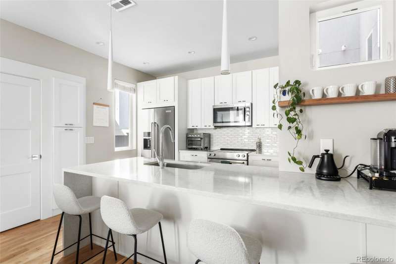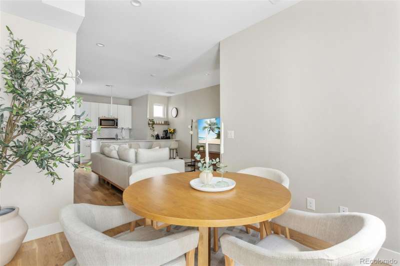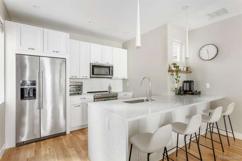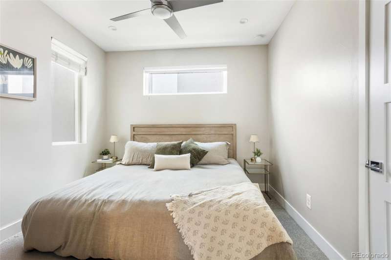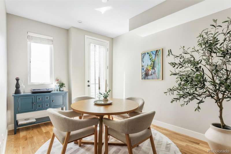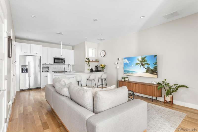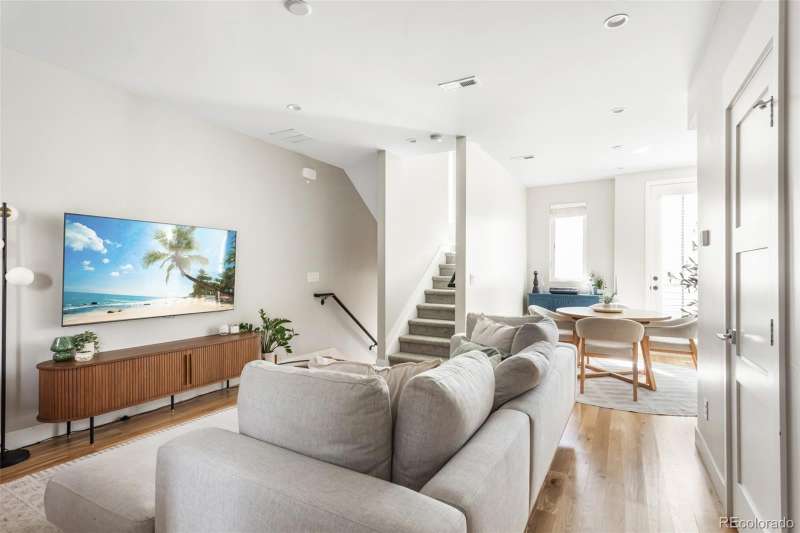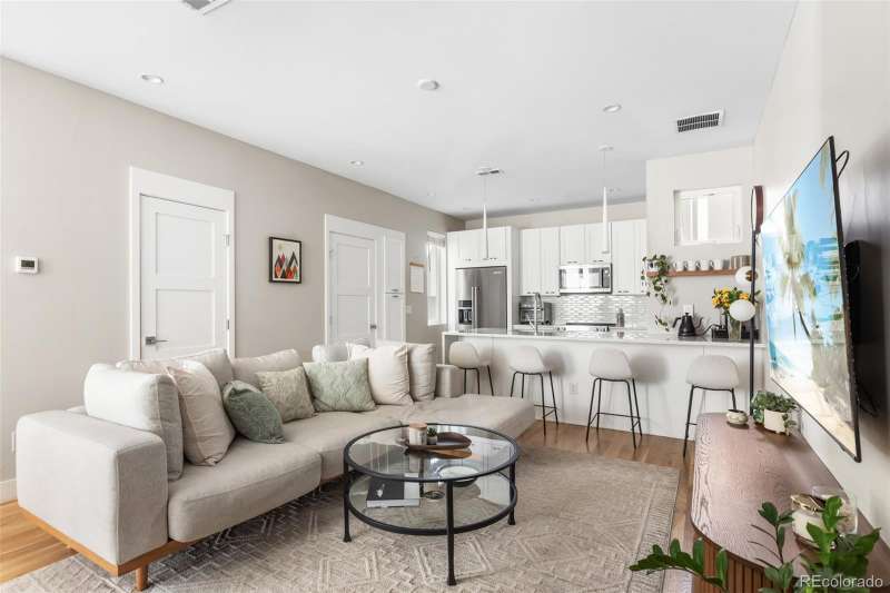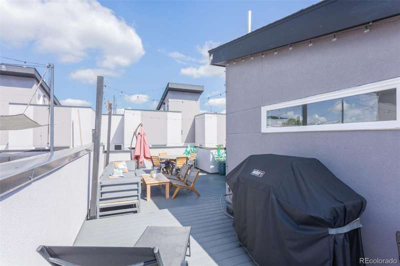Welcome to this stunning 2-bedroom, 2.5-bathroom townhome in Denver, boasting 1,252 sq ft of beautifully designed living space. Built in 2019 and just 4 blocks south of Sloan's Lake, this home offers a perfect blend of modern luxury and urban convenience. Enjoy breathtaking views of downtown Denver from the expansive rooftop deck, perfect for entertaining. The freshly painted interior and refinished oak hardwood floors create a warm and inviting atmosphere, while brand new carpet adds a touch of comfort. The open-concept layout shows like a model home, offering a seamless flow between the living, dining, and kitchen areas. Benefit from the convenience of an attached 2-car garage, providing ample storage and parking, with no HOA to worry about. This gorgeous townhome is a rare find and a true gem in the heart of Denver. Don't miss the opportunity to make it yours!