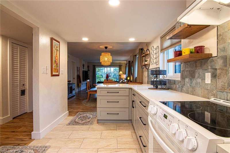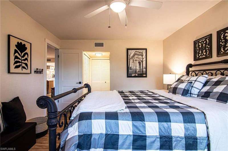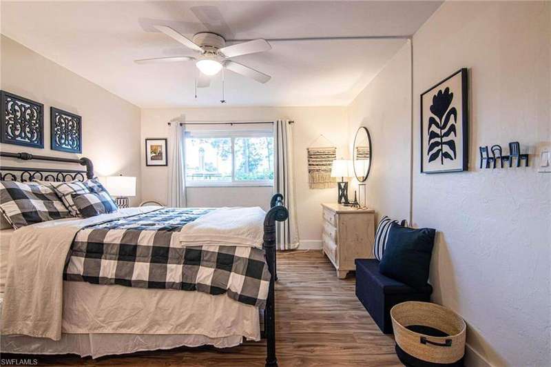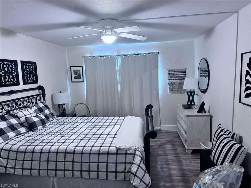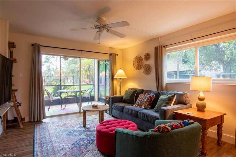 *****EASY LIVING*****NOT a 55+ community. Convenient & centrally located off of Crystal Drive and Cleveland Ave in Fort Myers. 2 miles to Trader Joe's and Whole Foods and lots of restaurants; walk to Starbucks, the drugstore, or the 10 mile linear park. Bottom floor, END UNIT condo with Hurricane impact windows, updated laminate floors, updated kitchen, updated bathrooms, new tile floors in bathrooms, 2024 AC, hot water heater, 2024. Lots of light with the end unit, a screened back patio and covered parking. Heated pool in the winter, tennis court, & a small work out area. Close to the local pickleball courts of Brooks Community Park. There are three (3) buildings in Barkeley Square and each building has its own financial status. According to the property management, this building has completed the 40 year inspection required by the State of Florida, and the reserves are good to go!