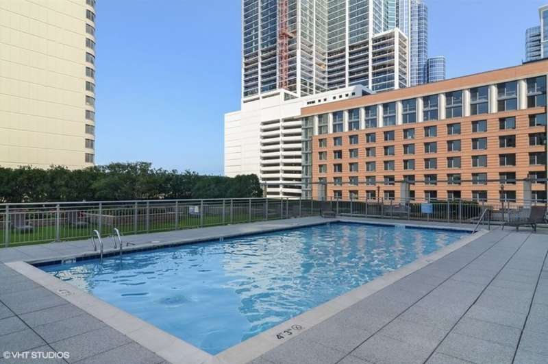 Welcome to Unit 1400 at Michigan Avenue Tower I, a spacious and light-filled one-bedroom condo in the heart of the South Loop. Enjoy two private balconies-one off the living room and one off the bedroom-with sweeping views of Michigan Avenue, Grant Park, and Lake Michigan. The open layout features hardwood floors, floor-to-ceiling windows, and a kitchen with granite countertops, stainless steel appliances, and a breakfast bar perfect for casual dining or entertaining. The bedroom offers generous space, a walk-in closet, and direct access to a private balcony. Washer and dryer in unit. Building amenities include 24-hour door staff, rooftop pool, fitness center, dog run, landscaped rooftop terrace, party room, and recently updated common areas. Heated garage parking available for an additional cost. Assessments include heat, A/C, gas, cable, internet, storage, and full access to amenities. Close to Grant Park, Museum Campus, Trader Joe's, CTA, and everything South Loop has to offer!