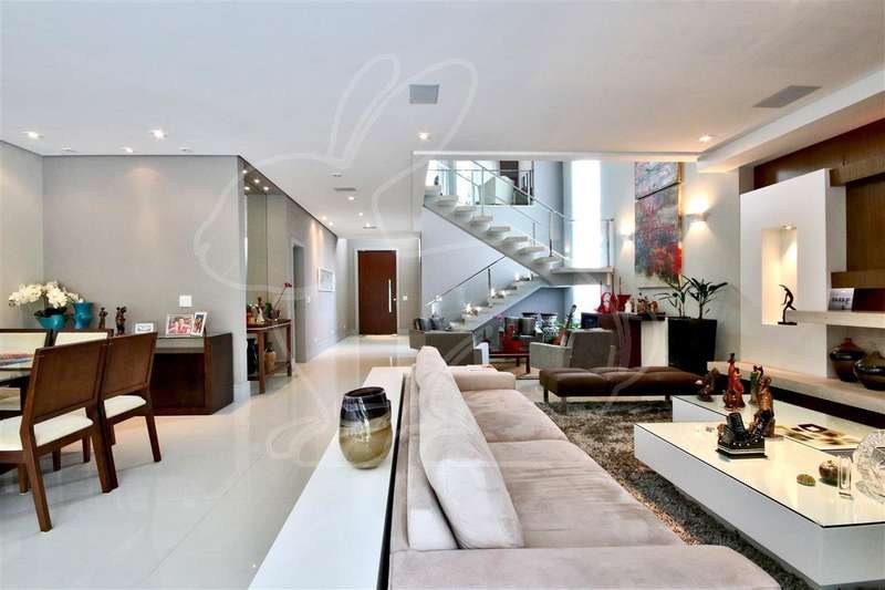 Casa clean, bem iluminada, 4 suítes amplas, living vários ambientes, gourmet integrado, piscina e churrasqueira. Acabamento primoroso, decorado com bom gosto. Planta funcional e prática. Mobiliada.