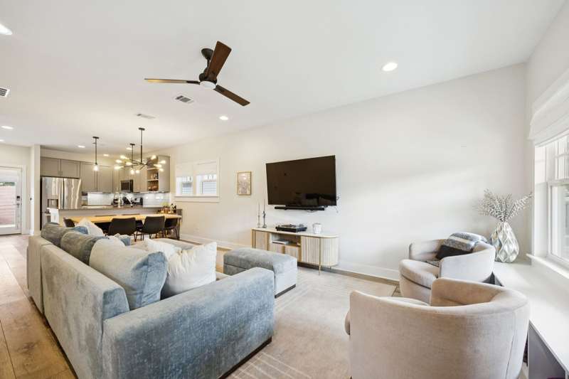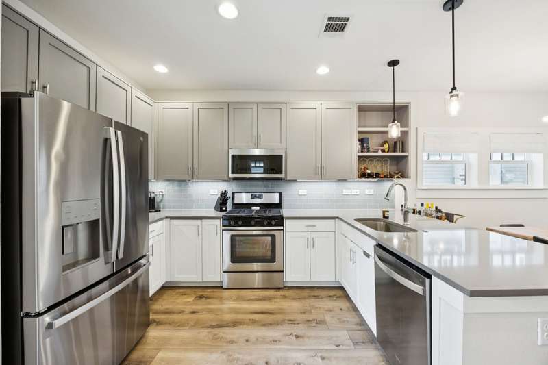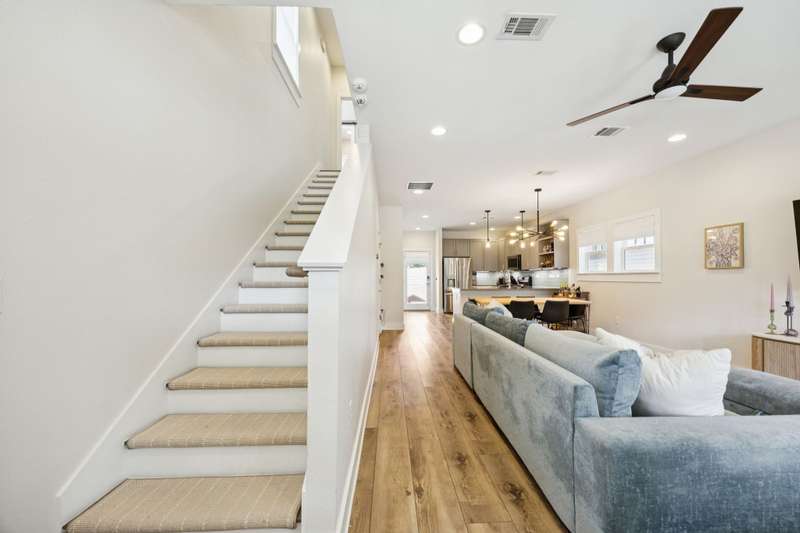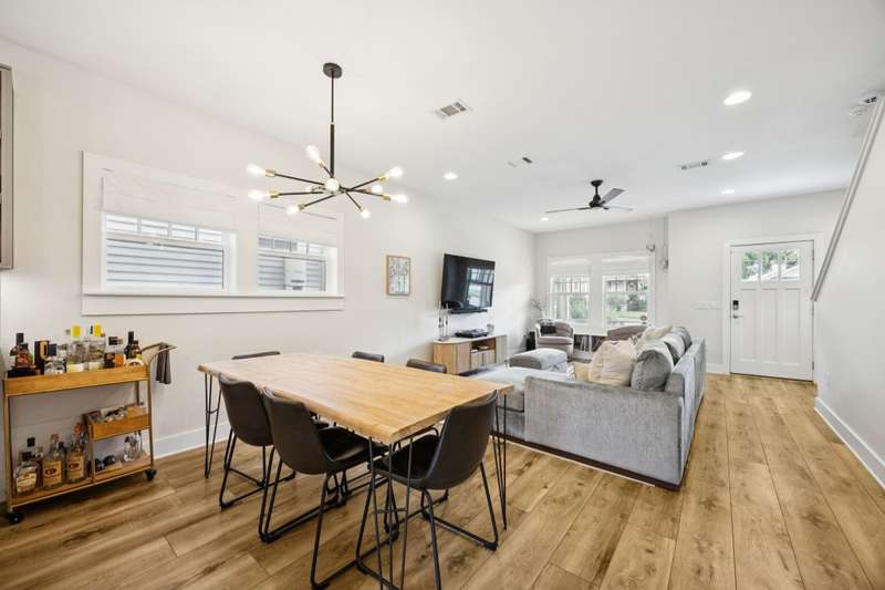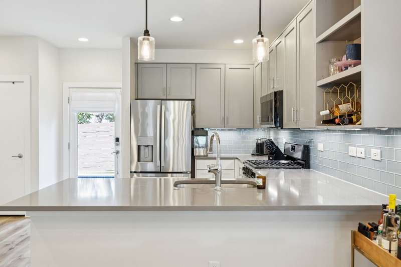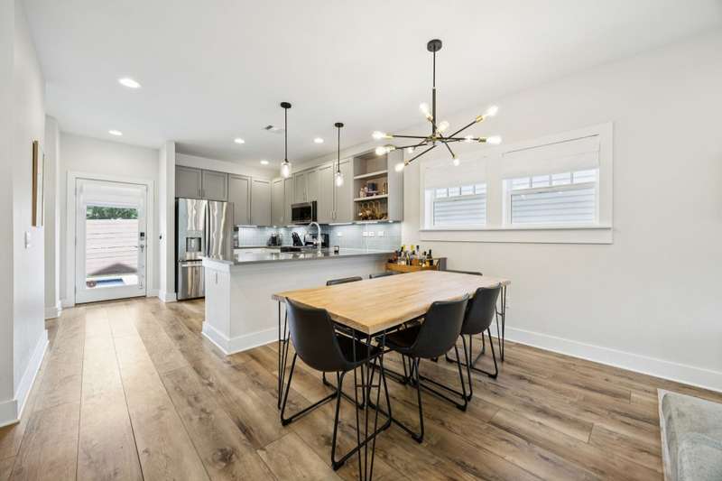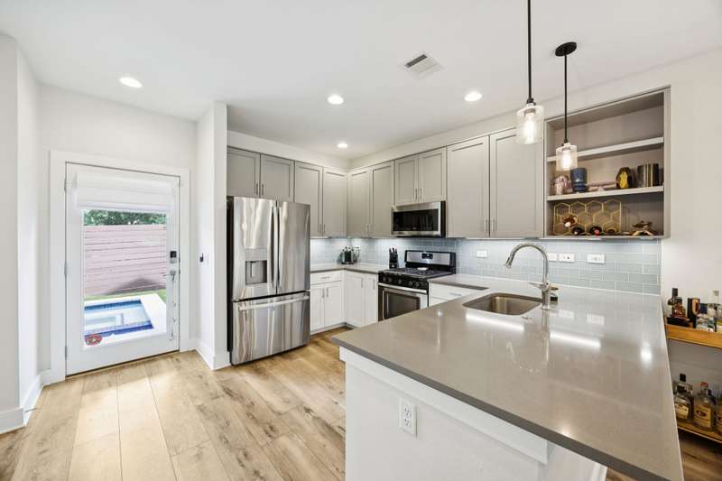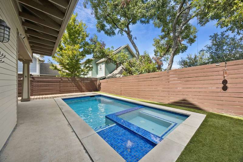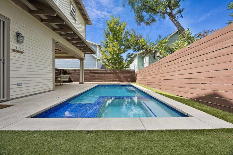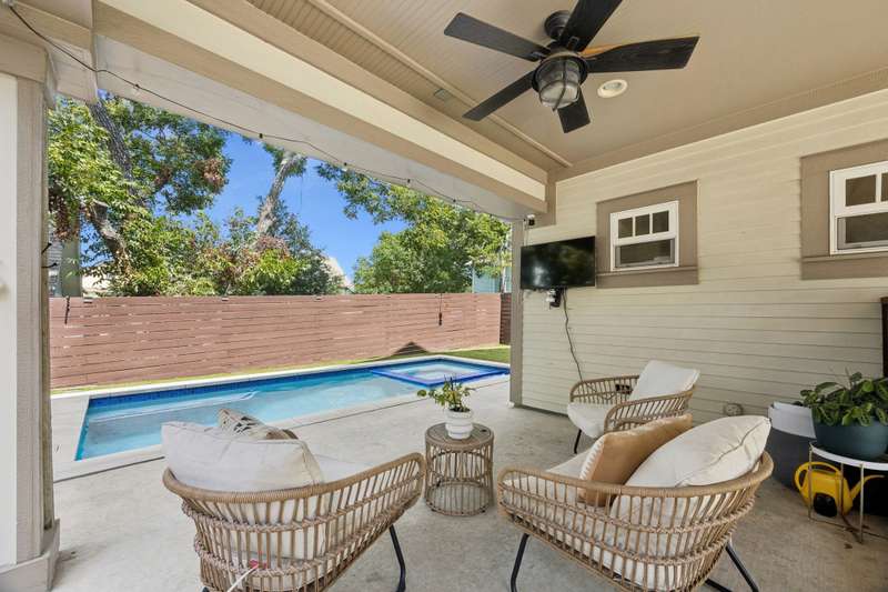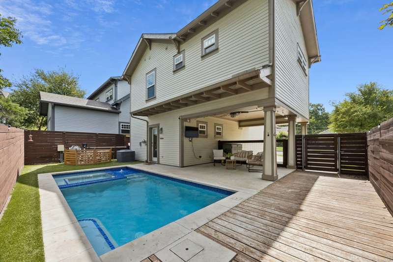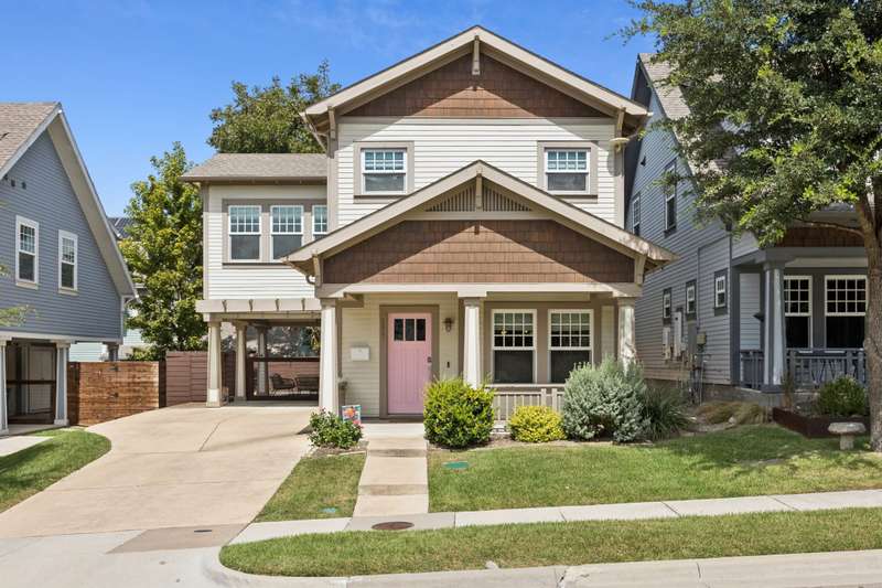 Welcome to this light-filled craftsman-style home with a pool just steps from 12 Hills Nature Preserve and Stevens Park Golf Course. A welcoming front porch opens to an airy layout with spacious living & dining areas open to the designer kitchen featuring quartz counters, glass subway tile, stainless appliances & two toned cabinets w-undermount lighting. Thoughtful touches include: custom window coverings, warm honey-toned floors, mudroom nook, half bath, & under-stair storage. Upstairs, the primary suite offers vaulted ceilings & spacious ensuite bath w-double vanity, oversized shower, & walk-in closet. Two generous bedrooms share a well-appointed bath, while the backyard is your private retreat! Dive into the sparkling pool, unwind in the heated spa & lounge under the covered patio. With turf and decking, its low-maintenance and perfect for year-round entertaining. A one-car attached covered parking adds convenience, all in charming Kings Highway, just minutes from Bishop Arts, Sylvan30 & Downtown Dallas! HOA covers all yard maintenance!