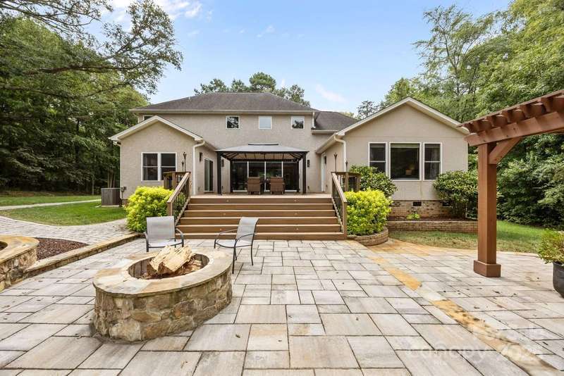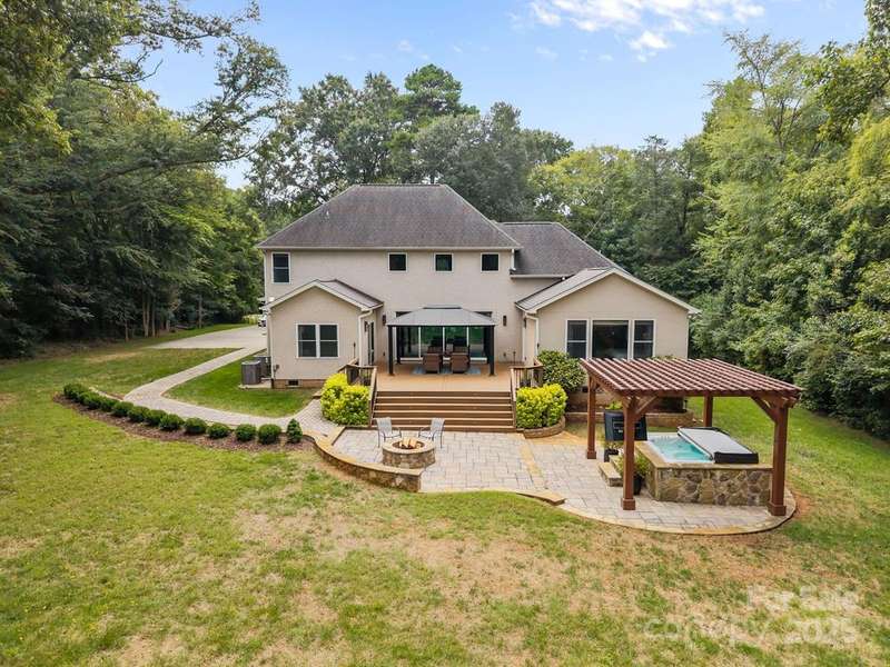 Welcome to this stunning home set on a picturesque, park-like lot with nearly 2 acres of privacy. Inside, you'll find an open floor plan with the primary suite conveniently located on the main level. The spacious kitchen flows seamlessly into the living room, perfect for entertaining family and friends. Working from home is a breeze with a dedicated office space. Upstairs, you'll discover three secondary bedrooms and a loft ideal for movie nights or gaming. Step outside onto the back deck that showcases gorgeous views of the large backyard. Whether you're hosting a barbecue, enjoying quiet evenings, or gathering around the fire pit, this outdoor oasis has it all?including a hot tub for ultimate relaxation. With no HOA restrictions, you have the freedom to truly make this property your own. Conveniently located near Charlotte Douglas International Airport and the exciting, up-and-coming River District. Don't miss your chance to own a piece of luxury living in a prime location!