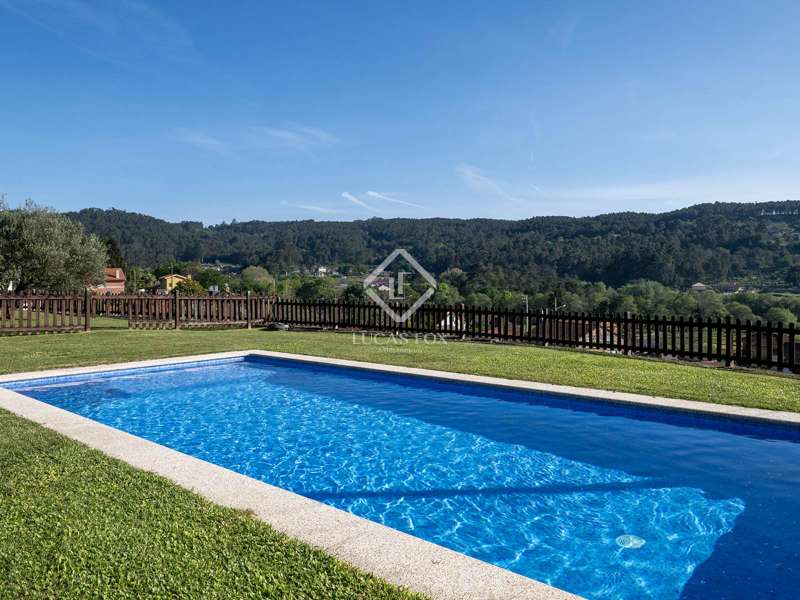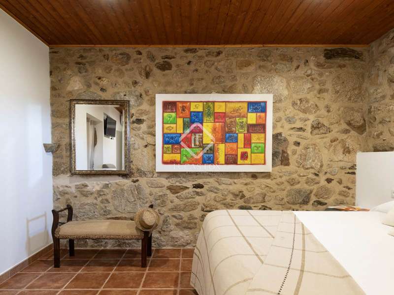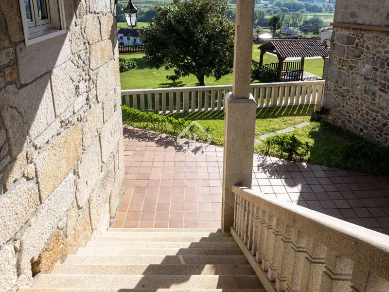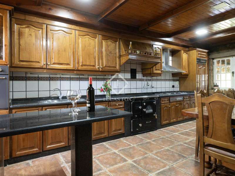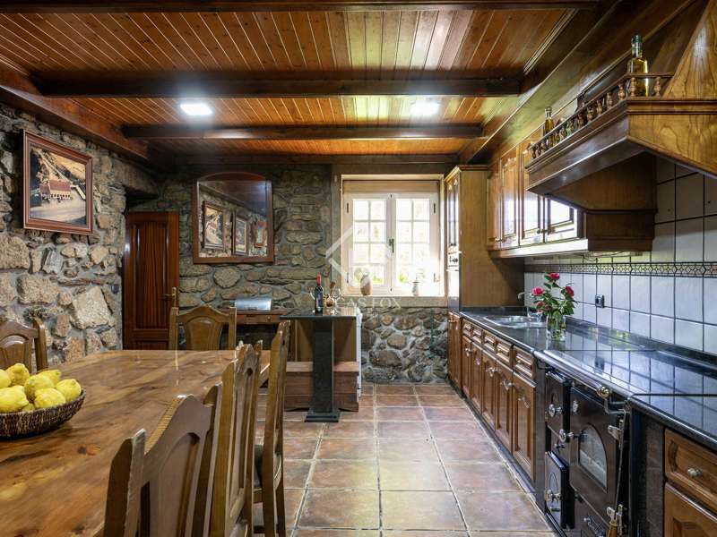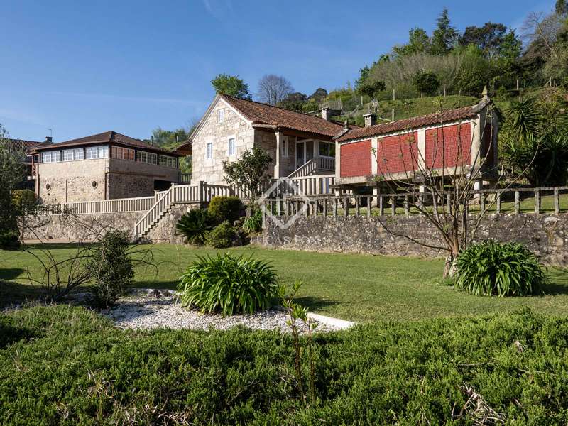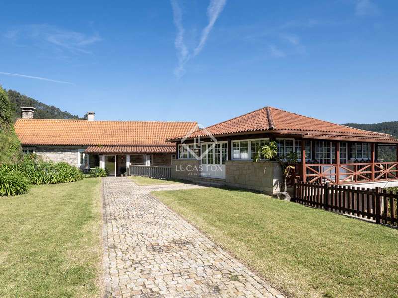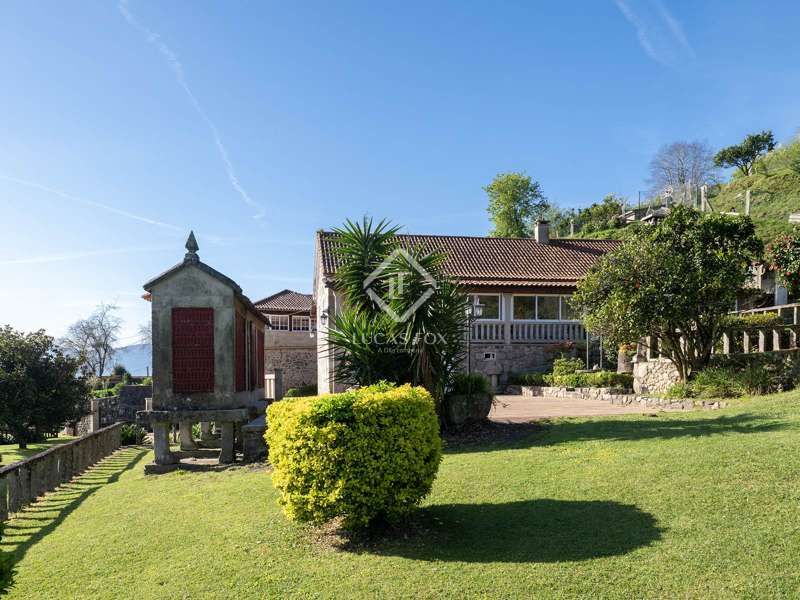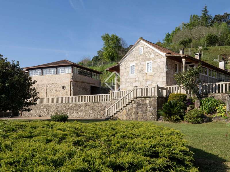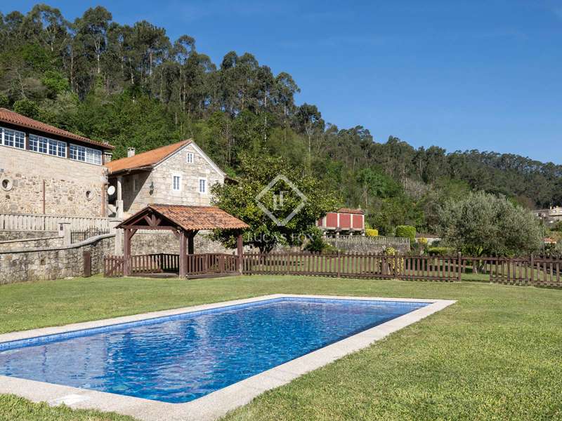 Lucas Fox offers for sale a magnificent Galician rustic style property consisting of a three-bedroom dwelling and a guest house, both built with thick stone walls with a total surface area of 400 m². The plot of land measures just over one hectare and offers beautiful views over the rural landscapes of Barrantes, in Tomiño-Pontevedra. The property is very easily accessed from the road and has ample parking space for several vehicles. The main building is a typical modern rustic construction, with a long corridor connecting the day area to the left and the bedrooms to the right. As soon as we enter the house, we find an open-plan kitchen with a dining area. On the other side of the corridor is a spacious living room, which in turn leads to three bedrooms. The rooms are ample and have windows with fabulous views of the rolling hills of Barrantes. The day area is connected to a large gallery which is full of light and looking towards the rear of the property. The property has a comfortable guest house built on two levels. The ground floor has a cosy bedroom and bathroom with beautiful stone walls. The upper level has large windows all around the perimeter, which makes it the perfect viewpoint for a privileged scenery. The plot is very large and mostly flat, although there are elevated areas where the owners' goats graze. In a large, terraced section there is a swimming pool which enjoys almost 360º views of the surrounding countryside. This property is unique and would be ideal for a couple with children looking for a peaceful life close to nature. Do not hesitate to contact us for more information.