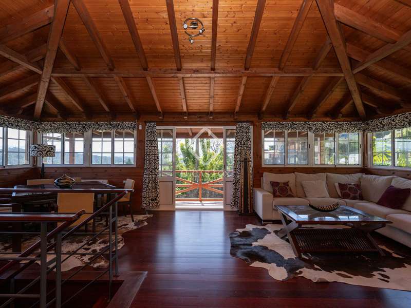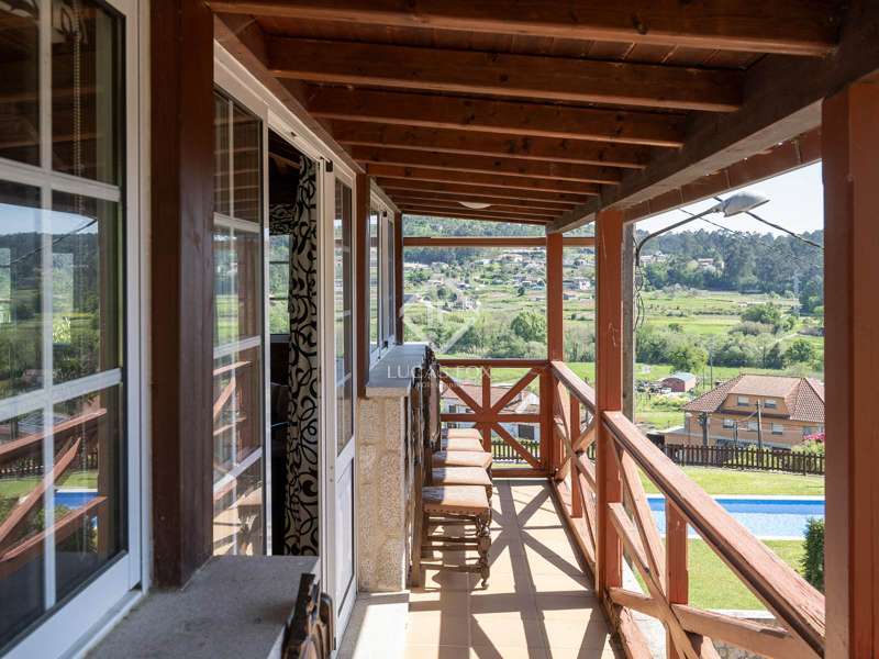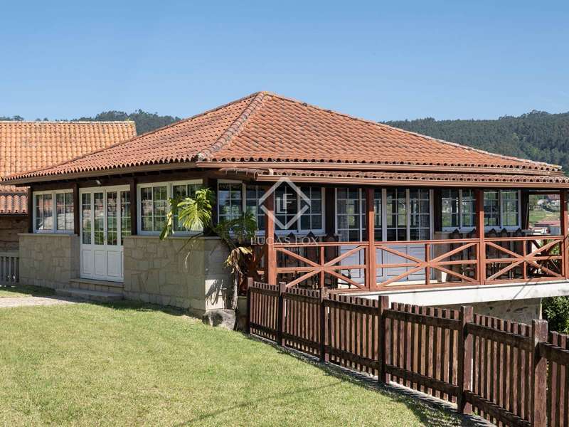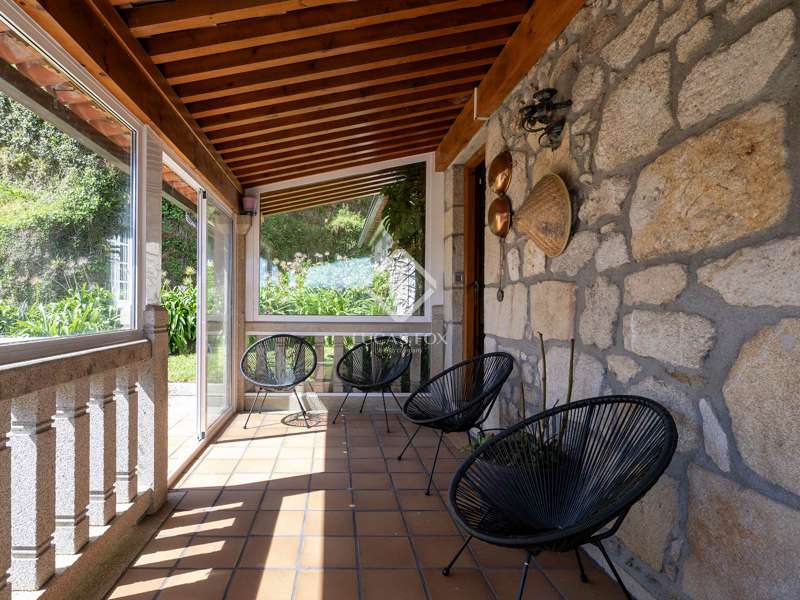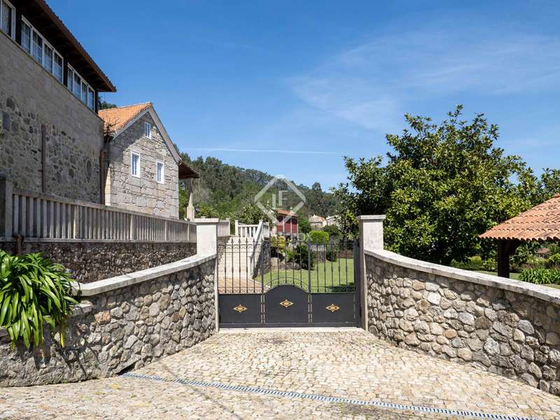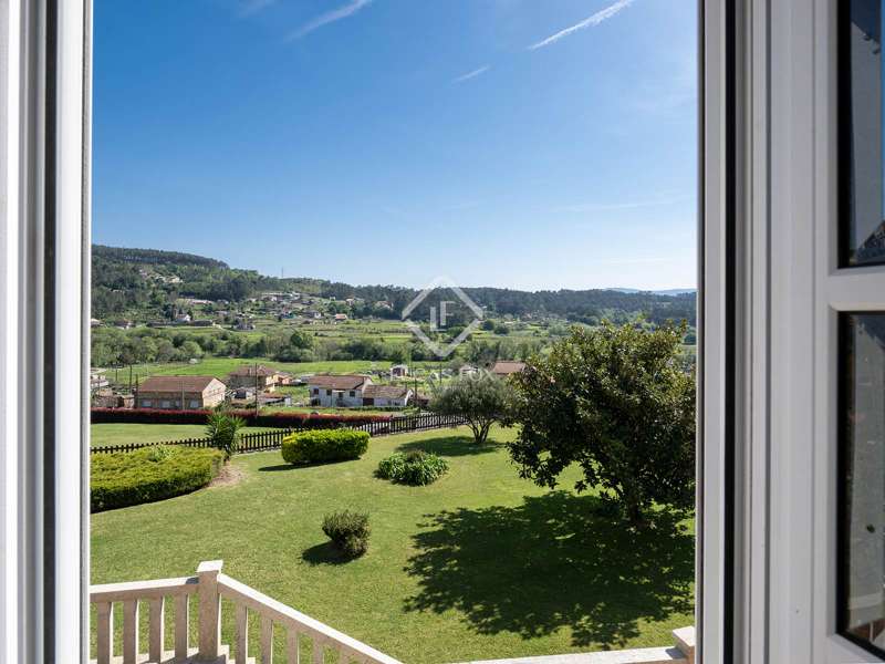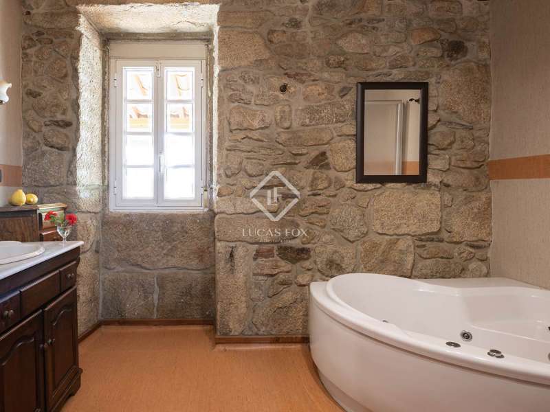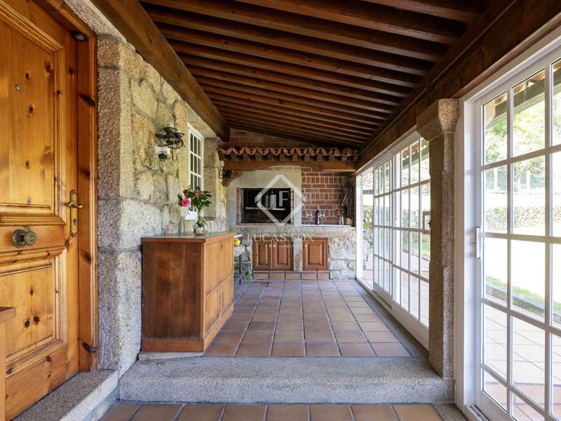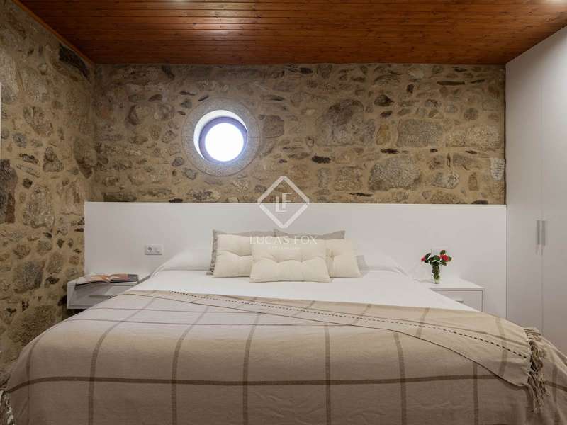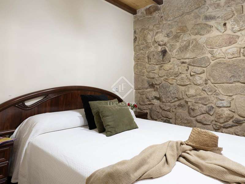 Lucas Fox offers for sale a magnificent Galician rustic style property consisting of a three-bedroom dwelling and a guest house, both built with thick stone walls with a total surface area of 400 m². The plot of land measures just over one hectare and offers beautiful views over the rural landscapes of Barrantes, in Tomiño-Pontevedra. The property is very easily accessed from the road and has ample parking space for several vehicles. The main building is a typical modern rustic construction, with a long corridor connecting the day area to the left and the bedrooms to the right. As soon as we enter the house, we find an open-plan kitchen with a dining area. On the other side of the corridor is a spacious living room, which in turn leads to three bedrooms. The rooms are ample and have windows with fabulous views of the rolling hills of Barrantes. The day area is connected to a large gallery which is full of light and looking towards the rear of the property. The property has a comfortable guest house built on two levels. The ground floor has a cosy bedroom and bathroom with beautiful stone walls. The upper level has large windows all around the perimeter, which makes it the perfect viewpoint for a privileged scenery. The plot is very large and mostly flat, although there are elevated areas where the owners' goats graze. In a large, terraced section there is a swimming pool which enjoys almost 360º views of the surrounding countryside. This property is unique and would be ideal for a couple with children looking for a peaceful life close to nature. Do not hesitate to contact us for more information.