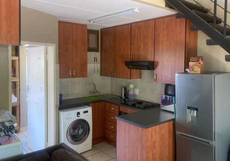 Exclusive Sole Mandate. Modern 2 Bedroom Duplex for Sale in Rooihuiskraal North. This beautiful lock-up and go offers 2 bedrooms, each with an en-suit bathroom, main bedroom has a shower and 2nd a bath, Open plan lounge and kitchen Patio and built in boma. It also offers 1 garage and 1 carport with private established garden.