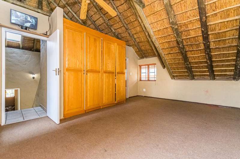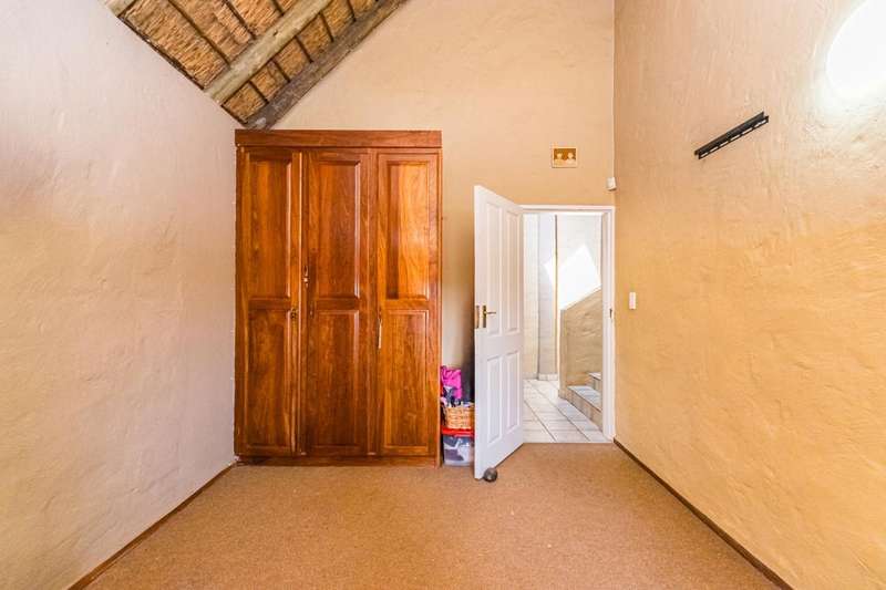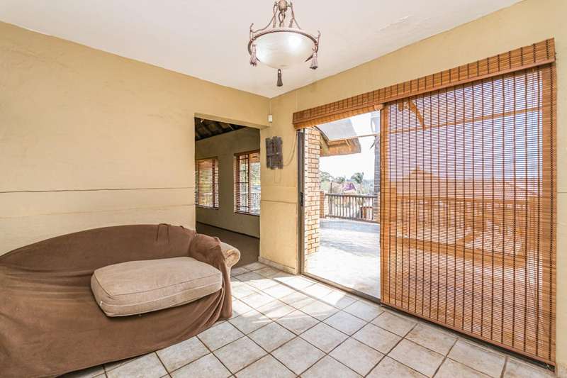 Feel like you are permanently on holiday! Welcome to a property that feels like a getaway every day ?Çô a thatched family home offering character, warmth, and incredible views. Perfect for those who love nature, entertaining, and a home that is truly one of a kind. Property Features Main Bedroom (Upstairs) Spacious main suite with en suite bathroom (bath, shower, toilet). Private balcony ?Çô ideal for morning coffee or watching the sunset. Charming thatch roof with wooden finishes. Wooden platform study or extra small bedroom, Packed with possibilities. Second Level 2 Bedrooms with natural light. Full bathroom (bath, toilet, basin). Additional Bedroom for guests or extended family. Well-planned kitchen with prep bowl, electric oven & stove, double sink and wash-up area. Spacious lounge and dining room ?Çô perfect for family living. Outdoor & Entertainment Large balcony with uninterrupted views ?Çô a true highlight of the home. Lapa with built-in braai ?Çô the ultimate space for friends and family gatherings. Face brick exterior ?Çô durable and low maintenance. Lightning conductor for peace of mind. Parking & Extras Double garage with direct access into the house. Extra separate storage. Additional secure parking. Outside toilet for convenience. Security Alarm system and CCTV, linked for complete protection. Lifestyle Appeal This home captures the essence of the African dream ?Çô thatch charm, warm wooden finishes, and spectacular sunsets from your balcony. Whether it?ÇÖs relaxing under the lapa, enjoying the views, or entertaining guests, this property offers space, comfort, and a lifestyle that feels like holiday living every day. Unique. Warm. Inviting. A rare find with character and views you won?ÇÖt forget.