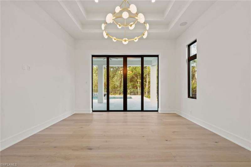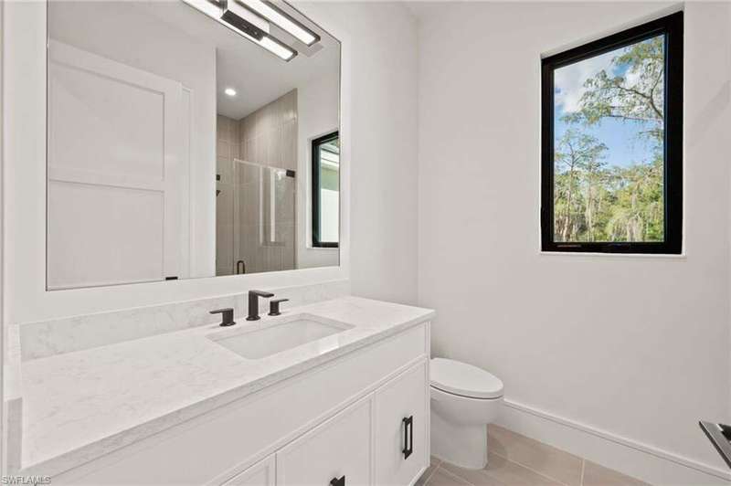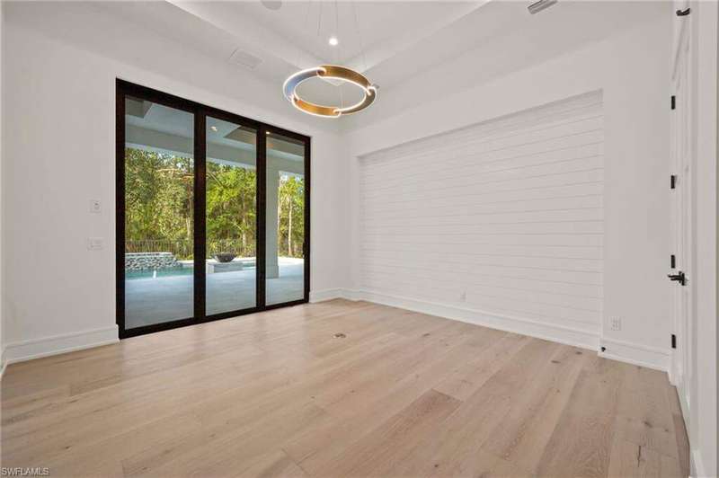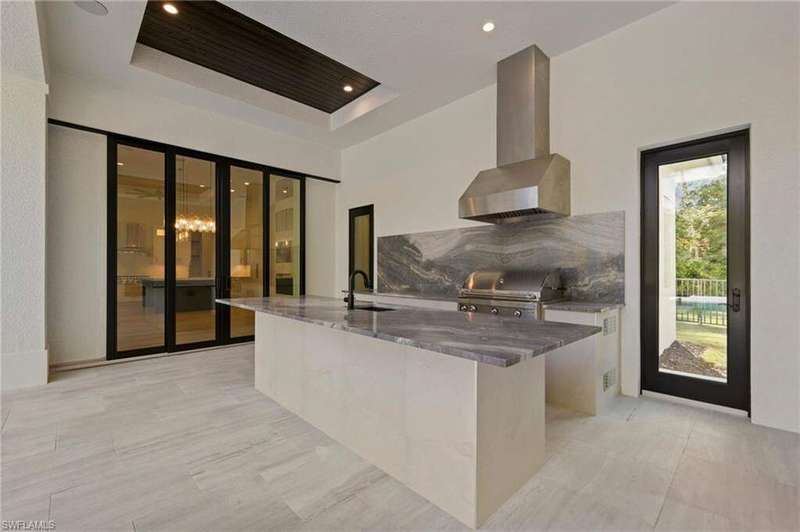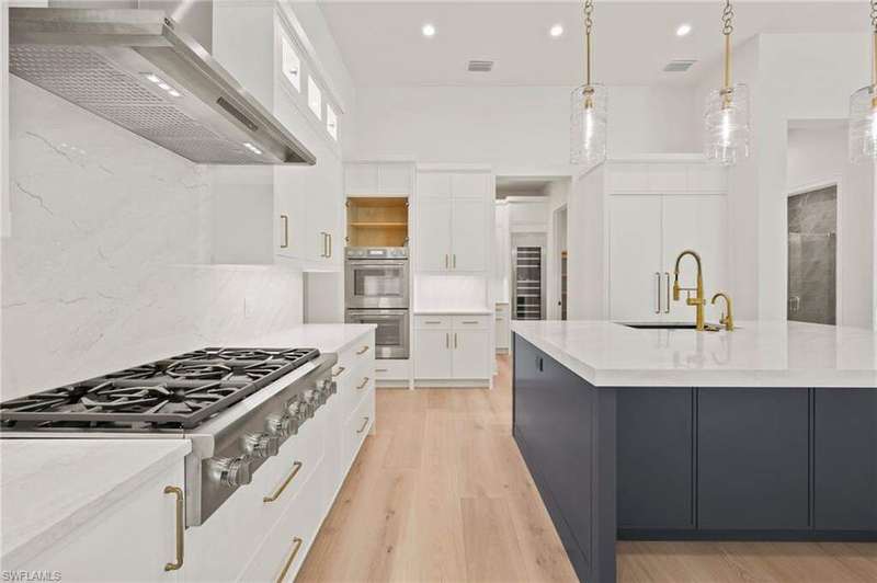 TRANSFERABLE GOLF MEMBERSHIP AVAILABLE! Skip the golf wait list and enjoy an immediate golf membership with only a transfer fee. Be the first to live in this New Construction home built by "Florida Lifestyle" and enjoy privacy at the end of a cul de sac while still having a golf course view. The split floor plan features four en suite bedrooms and the zen-like primary suite offers large custom walk-in closets and a spa-style bath with large soaking tub, custom walk-in shower with multiple shower heads, dual vanities, and two separate water closets. The adjacent study is anchored by a custom shiplap wall and provides access to the lanai while the open concept of the main area of the house flows from the gathering room with coffered ceilings and custom lighting, into both the kitchen and dining room. An elegant, mirrored wall in the dining area is a perfect aesthetic and the gourmet kitchen makes entertaining a snap with dual ovens, Thermador appliances, and an ample breakfast bar. Expanding the kitchen's efficiency is a magnificent butler's pantry fully equipped with a second dishwasher, sink, microwave, wine refrigerator, a large walk-in pantry, and plenty of storage. Hurricane-rated sliding doors open to a spacious covered lanai featuring an outdoor kitchen and fireplace. Relax beside the gorgeous pool, lounge on the sun shelf, soak in the spa, and enjoy the tranquil water and fire features. Amenity-rich Quail West, a hidden gem in North Naples, holds the exclusive Platinum Club status which is the pinnacle of recognition for Private Clubs around the world recognizing the top 1% globally. The world-class amenities include two championship golf courses, elegant clubhouse with a variety of dining options, a racquet sports complex, bocce courts, state-of-the-art fitness center, full-service salon/spa and unending activities for every interest.