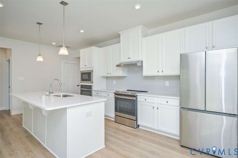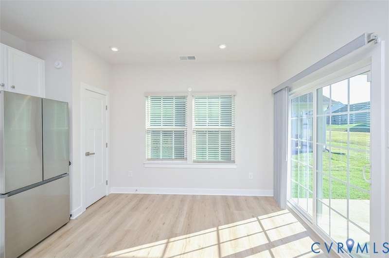 Welcome home to this better than new Move-In Ready - Bramante Floor Plan built in 2024! Enjoy one-level living in Womack Green, in the heart of Chester, with maintenance free living, walking trails and minutes from dining and shopping plus close access to 288 & I95. Upon entry, you will be greeted by Luxury Vinyl Plank flooring throughout the main living area. The spacious family room opens to the eat-in kitchen which offers Quartz countertops, stainless steel appliances, pantry and a large island and a dining area. The luxurious owner's suite features a tray ceiling, huge walk-in closet plus an en-suite bath with double vanity and an oversized tiled shower with dual shower heads and separate controls for personalized comfort. There is also two additional spacious bedrooms with large closets and a hall bath with single vanity and tub/shower combo in the hall bath. Other notable features include a covered front porch, two-car attached garage, double width paved drive, natural gas heat/central, vinyl siding and dimensional roof. Enjoy grilling or have your morning coffee on the rear patio. Don't miss out on this like NEW home. Call and Schedule Your Private Showing Today!!