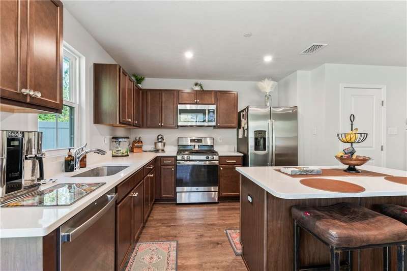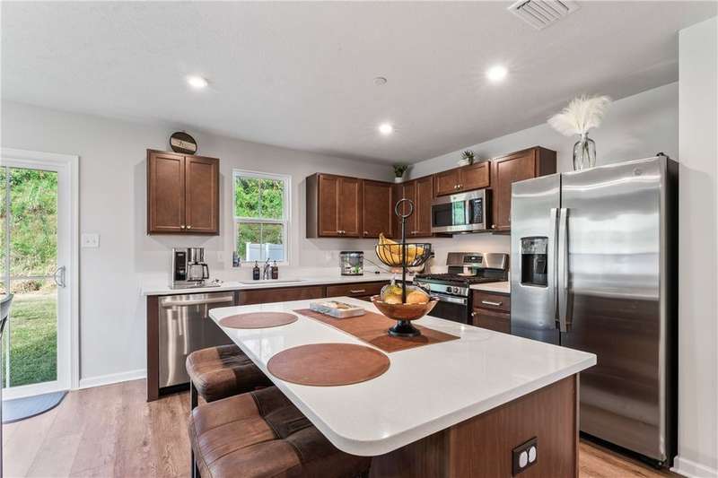 Welcome to the sidewalk community of Chippewa Trails! Enjoy the large yard included with this 2-story, end unit townhouse. Quality and Style! 3 bedrooms. 2.5 baths. Lawn care included in HOA. Maintenance free living! The open-concept main floor has luxury vinyl plank flooring and includes the spacious living/family room, natural light filled dining room, gourmet kitchen, powder room and pantry. The beautiful maple kitchen has quartz counters, upgraded stainless appliances and a large center island. Master suite includes full bath with double bowl vanity and walk-in closet with natural light and pull-down attic storage. 2nd floor laundry. Sliding glass door leads to the private back yard. Integral garage with opener plus the driveway is suitable for 2 cars.