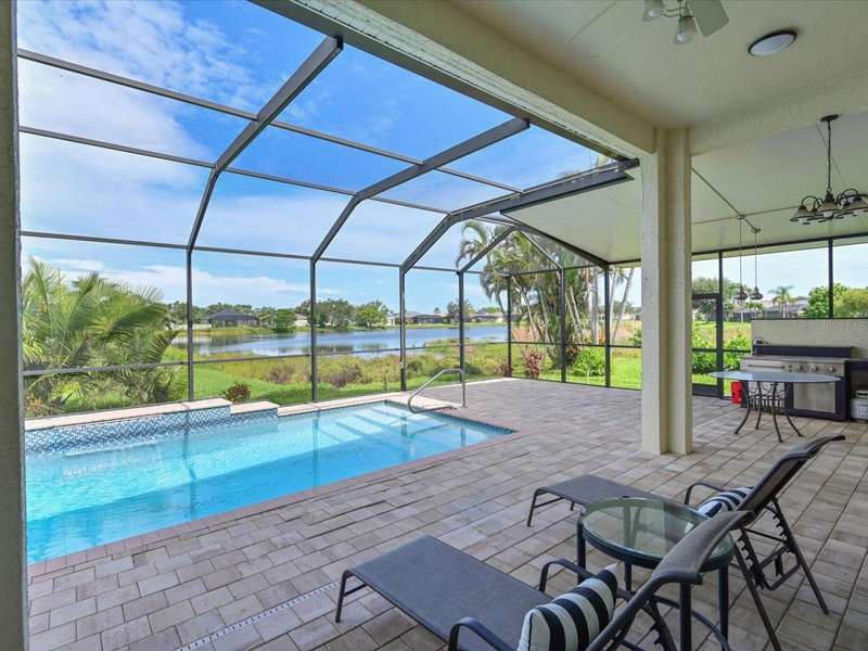 Back on the market through no fault of the Seller. LOCATION, LOCATION, LOCATION! Large single family home has recently updated flooring, paint and lighting and is available immediately. Just minutes from the entrance of world renown IMG Academy, this home is located in the desirable Glenn Lakes community and is great for full time living or investment rental with bedrooms on both levels.Solidly built block and stucco construction home with lake view offers 3 bedrooms plus den plus bonus room. Enter this home thru private screened entry area into a light filled great room with cathedral ceiling and sliding glass doors offering a light and bright first floor. Step out into the large screened in lanai with a sparking pool (2017 and heated) and views to the lake. Watch the egrets and ducks while relaxing outside or entertaining friends and family. The efficient kitchen/dining area offers room to have a family dinner and has stainless steel appliances. The primary suite on the first floor boasts a large walk-closet, ensuite bath with separate shower and tub and dual vanities and can be a lock-out unit.Bedrooms 2 and 3 are on the second floor and share an additional bath with tub/shower combination. The loft/den space holds built in shelving for all your necessities or you can easily add a closet to convert this to a 4th bedroom. This home offers a 2 car garage and driveway that can fit additional vehicles. The beautiful beaches of Anna Maria, Bradenton, and Longboat Key are a short drive away. Sarasota International Airport is 15 minutes away, and Tampa International Airport is less than 1 hour.Enjoy local and fine dining in the Bradenton area or venture just 10 miles to downtown Sarasota with many dining, entertainment venues and shopping options.Glenn Lakes is a deed restricted community with community tennis/pickle ball courts. Community is within walking and biking distance to IMG Academies.