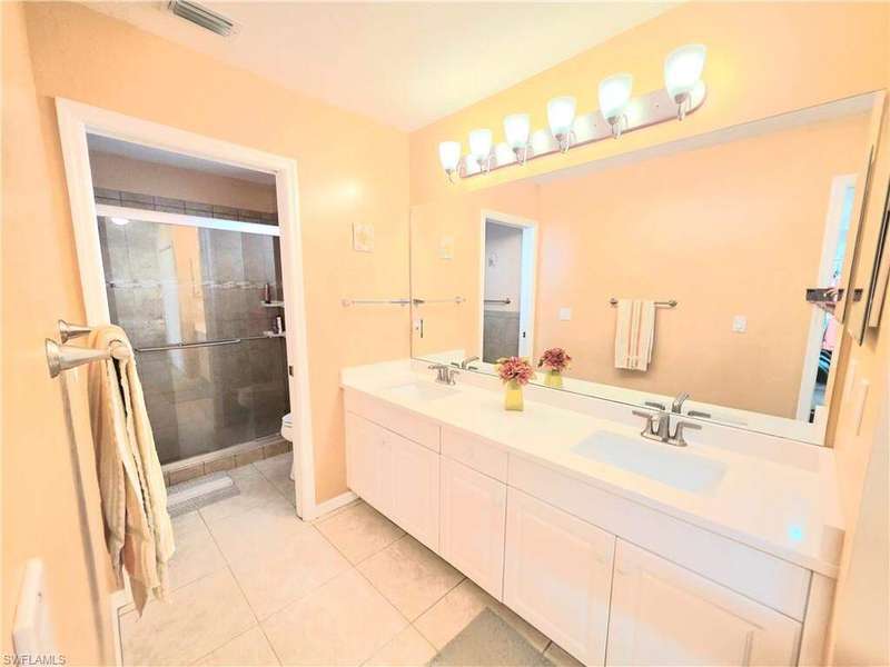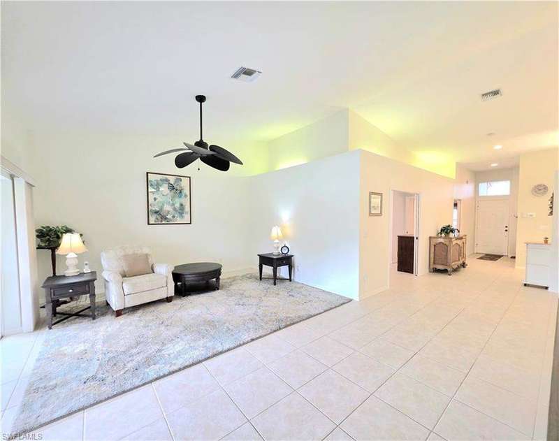 3-bedroom, 2-bathroom, 1774 Sq. Ft. home located in the Greens at Bonita Springs. The vaulted ceilings and ample kitchen space make this home feel very spacious. Many upgrades including newer quartz countertops by Cornerstone, newer kitchen appliances, AC 2022, Roof 2018, Spray foam insulation 2023, updated lighting, plumbing fixtures, etc. With fresh paint, this home feels feels very inviting. Minutes from Downtown Bonita Springs with many hidden gems-where old Florida charm meets modern artistic energy. The beaches, Estero, Fort Myers, and Naples are only a short drive away. Not in flood zone--no flood insurance required. Being sold partially furnished.