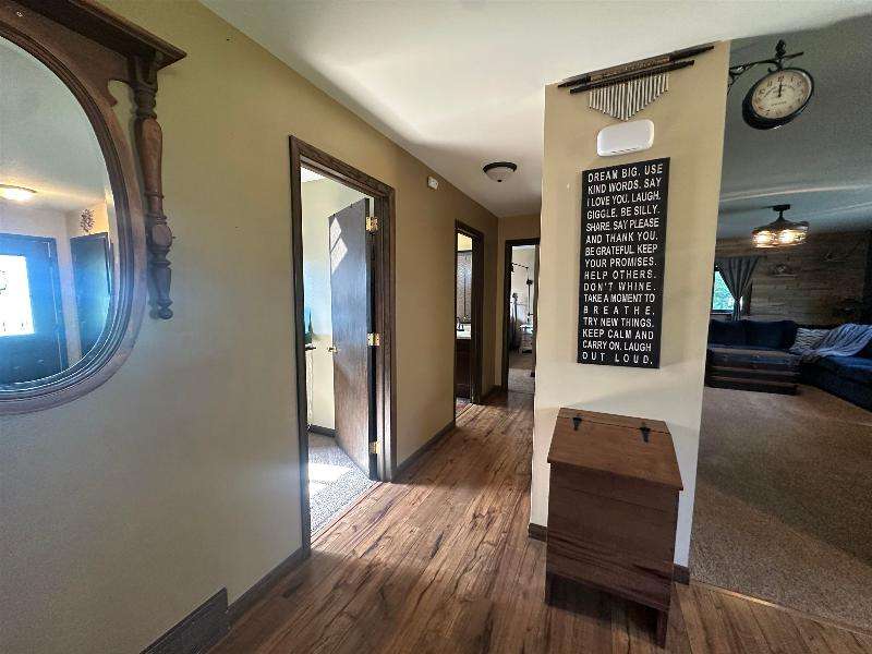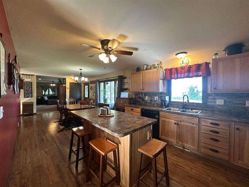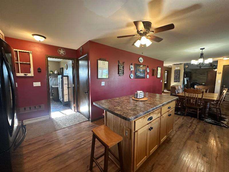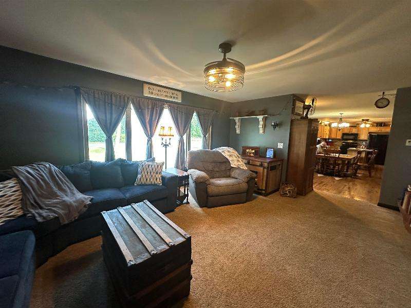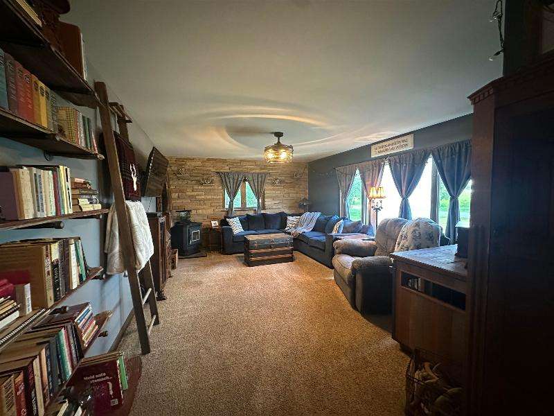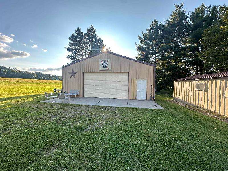 Looking for peaceful country living with room to roam? This spacious 4-bedroom, 2-bath ranch home offers over 2,100 sq ft of finished living space on a beautiful 1.55-acre lot, ideally located between Amherst & Stevens Point. The main floor features an open-concept layout with a welcoming kitchen, dining and living area-complete with a cozy pellet stove for those chilly Wisconsin nights. The lower level offers a partially finished basement that includes a large family room, a fourth bedroom, an additional bonus room and abundant storage space. Need workshop or hobby space? You'll love the impressive 32x48 outbuilding (built in 2018), equipped with 220 power, a floor drain and a concrete pad ready for a future car hoist-perfect for any mechanic or DIY enthusiast. The property also includes a backyard storage shed, mature apple trees, a fire pit and plenty of room to enjoy the outdoors. The main floor laundry room was previously converted into a second full bath but could easily be switched back to laundry if preferred. Washer & dryer were new in 2023. Don't miss your chance to own this versatile property with space, comfort and country charm!