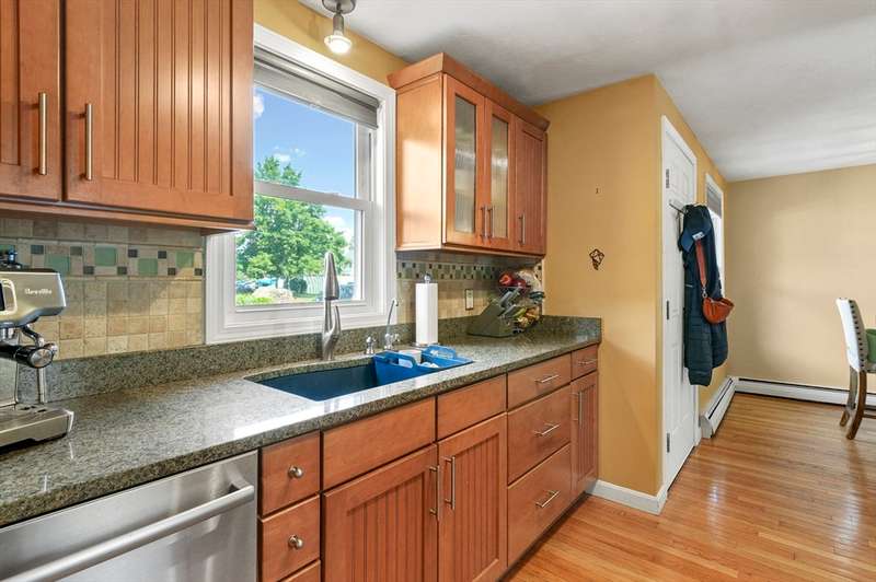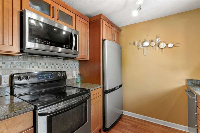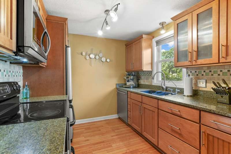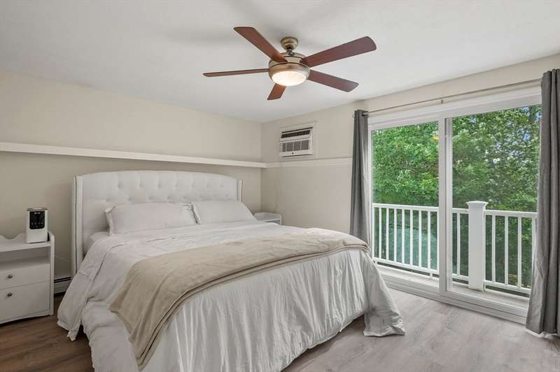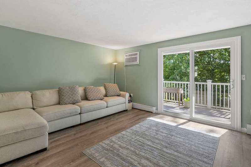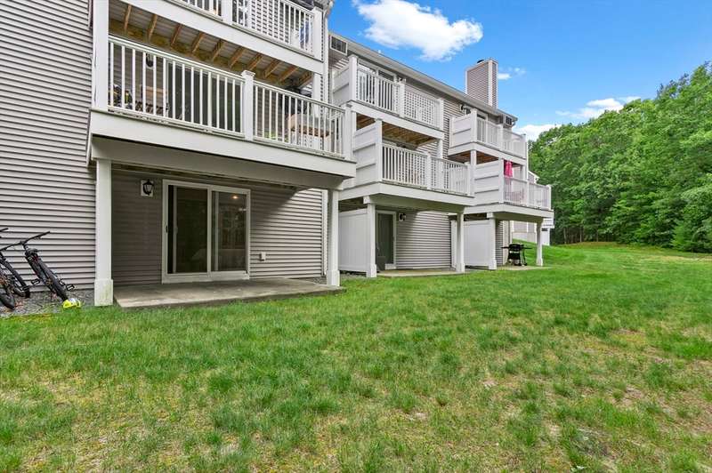 OPEN HOUSE CANCELLED!!! Welcome home to this bright and airy townhome in the desirable Wildwood Condominiums. The open-concept main level features a kitchen with hardwood floors, granite countertops, stainless steel appliances, and a stylish tile backsplash—flowing seamlessly into the dining area. The living room offers durable vinyl flooring and sliders to a private balcony, perfect for enjoying the fresh air. A convenient half bath completes the main floor. Upstairs, you'll find two spacious bedrooms with vinyl flooring, one with access to its own balcony, along with a beautifully updated full bath. The finished lower level includes a bonus room being used as a 3rd bedroom with recessed lighting, walk-in closet, full bath with tiled shower, and a slider to the backyard. Enjoy outdoor living with a composite front porch, back deck, and multiple balconies. Two assigned parking spaces plus visitor parking. Easy access to I-190, Route 117, and Route 2.