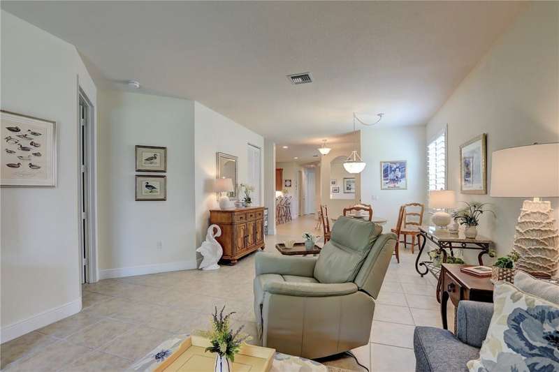 Beautiful end unit 3-bed, 2-bath, 1-car garage villa located in the desirable 55+ community of Woodfield. This well-maintained home features a split floor plan, offering plenty of privacy for guests. The large kitchen provides ample cabinetry and workspace, both bathrooms are equipped with walk-in showers for added comfort, 2025 A/C. Short walk to the clubhouse, where residents enjoy a full social calendar of tennis, bocce ball, billiards, a fitness center, a heated pool & spa. HOA includes cable TV & internet. Conveniently located near shopping, dining & Vero's beautiful coastline. rmszsaprox