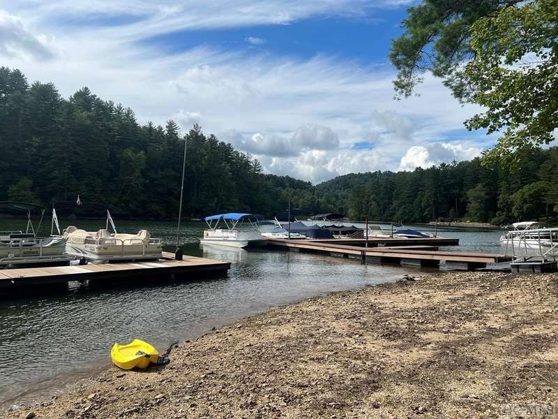 In the charming community of Woudes Mountain Village sits this serene and private, approximately 2.5 acres of land that boasts beautiful hardwoods and native flora. Within the lots, features include a small stream and a private walking trail that allows a short hike down to the community's shared docks and lake access - making it easy to get into your boat and out on the water! The land is gently sloping to provide a more accessible build site for your mountain retreat or year-round abode. Scenic Lake Glenville offers fishing, swimming, canoeing, boating, and kayaking. Private community water is available, so there is no need to dig a well. The lots are within 15 minutes of a box canyon double waterfall hike known as High Falls and a favorite restaurant, "Happs Place," which features lunch, dinner, and live music. Located 25 minutes from the Village of Cashiers and 30 minutes from Highlands, additional fine dining, shopping, and hiking are just a short drive away.