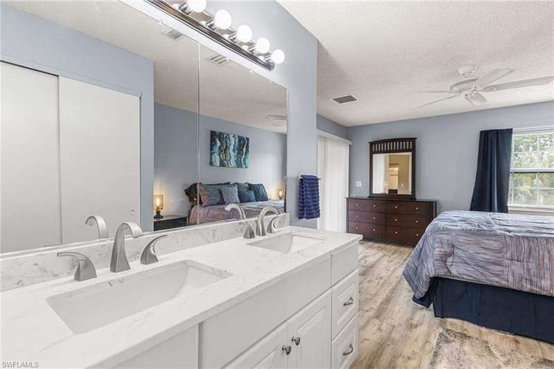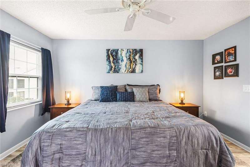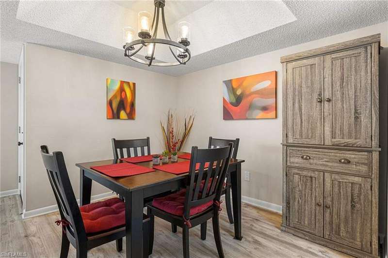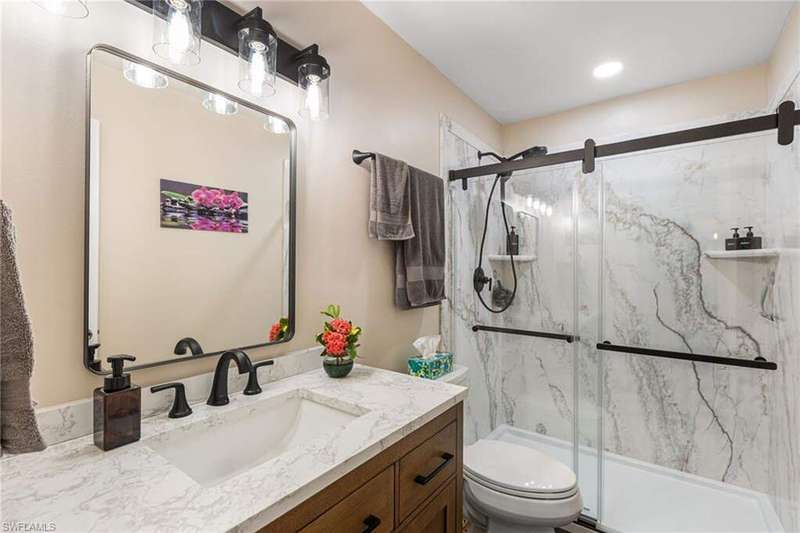 Welcome to Terraverde Country Club! This beautifully updated 2-bedroom, 2-bathroom condo offers 1,060 square feet of thoughtfully designed living space and an abundance of high-end upgrades that set this home apart. Step inside to discover new laminate flooring throughout-there's no carpet anywhere, providing a fresh, modern look and easy maintenance. Both bathrooms feature waterproof laminate flooring, upgraded showers, and luxurious marble countertops. The kitchen is a true showstopper, boasting upgraded quartz countertops, stylish soft-close cabinetry, beautiful dark hardware, and contemporary lighting fixtures that create a warm, inviting atmosphere. A newer washer and dryer make laundry a breeze, while a new air conditioner and new hot water heater ensure peace of mind for years to come. Every detail has been considered for comfort and safety, including impact windows and doors. Step out onto your spacious second-floor lanai and take in nature's beauty that surrounds you. From this peaceful perch, you'll enjoy views of the golf course and a tranquil pond, where are graceful fountain creates a soothing backdrop-perfect for your morning coffee. The lanai also includes extra storage and a Storm Smart Screen for shade, privacy and protection. This move-in ready home combines style, function, and security, with furnishings negotiable to make your transition even easier. Don't miss this opportunity to own an upgraded residence in a serene setting with every big-ticket item off the check list.