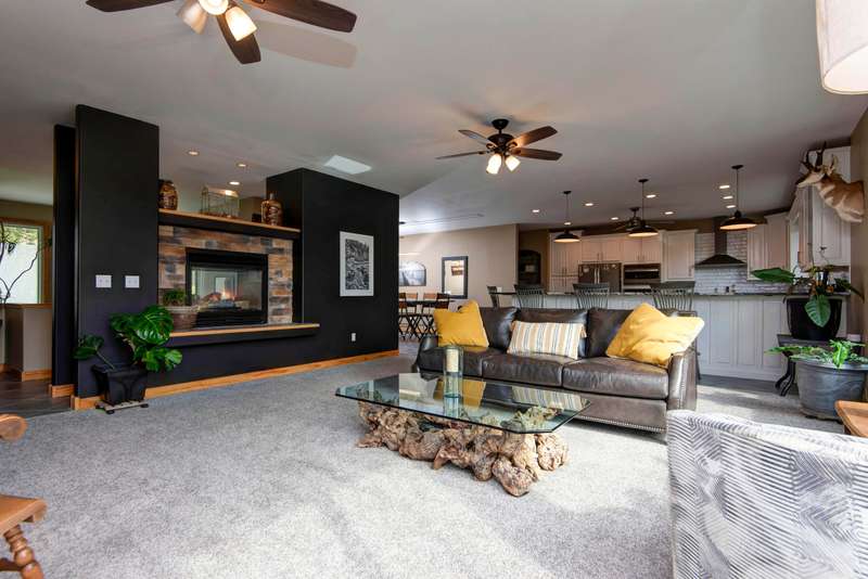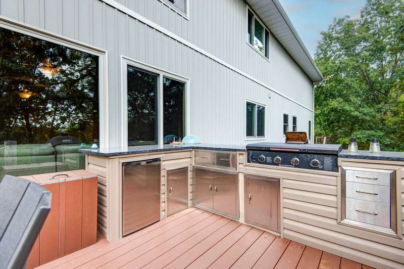 A Stunning Lakefront Retreat on the Shores of Table Rock Lake!Discover this exceptional 4-bedroom, 3.5 bathroom home boasting a spacious 3-car attached garage and is move in ready so you can start living the ''lake life''. Just a short golf cart ride away, an optional 10x28 boat slip ($70,000) is available nearby, perfect for water enthusiasts.Step inside to an inviting open floor plan flooded with natural light, showcasing spacious rooms throughout. The living room centers around a striking see-through fireplace, a wall of windows, and seamless access to the deck via patio doors. The gourmet kitchen is a chef's dream, featuring a generous island, a sprawling bar area built to entertain a crowd, sleek granite countertops, stainless steel appliances, cabinetry for all your culinary needs and a formal dining area tucked just to the left. The main floor master bedroom is stunning with a stone accent wall framing the king size bed and has access to the deck through the patio door. There's plenty of room in the master closet for both his and her wardrobe. The master bath features granite countertops and a rejuvenating zero-gravity walk-in shower.Downstairs, you'll find three additional bedrooms, two full baths, laundry room, a spacious family room, and a versatile game room/man cave, ideal for relaxation or entertainment. (Note: Sauna is not included.)There's even a dedicated John Deere room to store your lawnmower and lawn equipment.The lower-level lakeside deck is an entertainer's paradise, complete with an outdoor kitchen (included), cozy firepit, and expansive seating area perfect for enjoying beautiful evenings by the lake. Note: Hot Tub is not included.This incredible opportunity won't last longmake this lakefront dream home yours today!