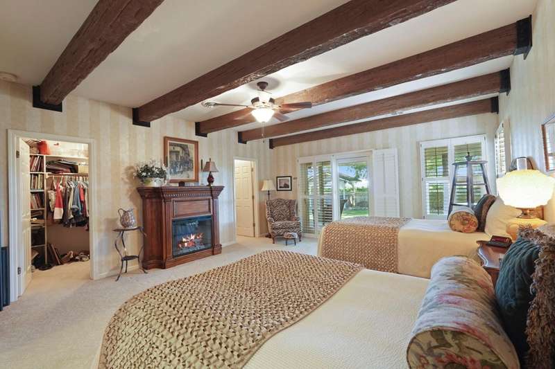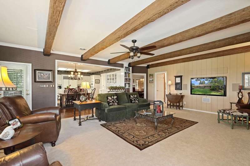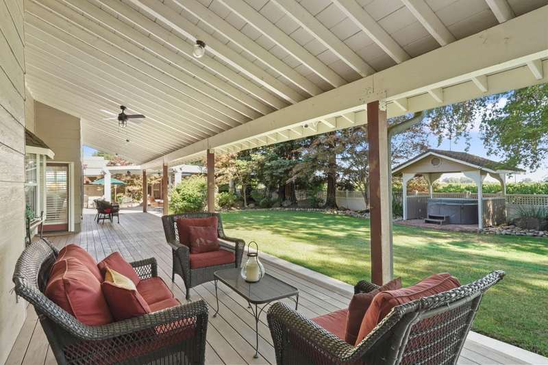 Gorgeous country property on Lodi's desirable West side-first time ever on the market! This must-see home offers 4 bedrooms, 3 full baths, and 2 spacious primary suites, perfect for multi-gen living. The chef's kitchen features a Sub-Zero fridge, double ovens, 6-burner gas cooktop with downdraft, island seating, hardwood floors, and tons of storage. The bright living room includes high ceilings with beams, a gas insert fireplace, and large windows overlooking the stunning backyard. An entertainer's dream with a full-length covered deck made of South America hardwood, a large patio with custom stone gas fireplace, and a covered lounge area with a convertible ceiling, fan, and lighting. The 30'x 60' shop includes a finished 28'x 18' office/game room with private access. Carport parking for 3-5 vehicles plus RV/boat space. Beautifully landscaped front and back yards with mature trees and peaceful, park-like setting. Just minutes from downtown Lodi, Lodi Lake, and surrounded by wineries, dining and outdoor recreation.
