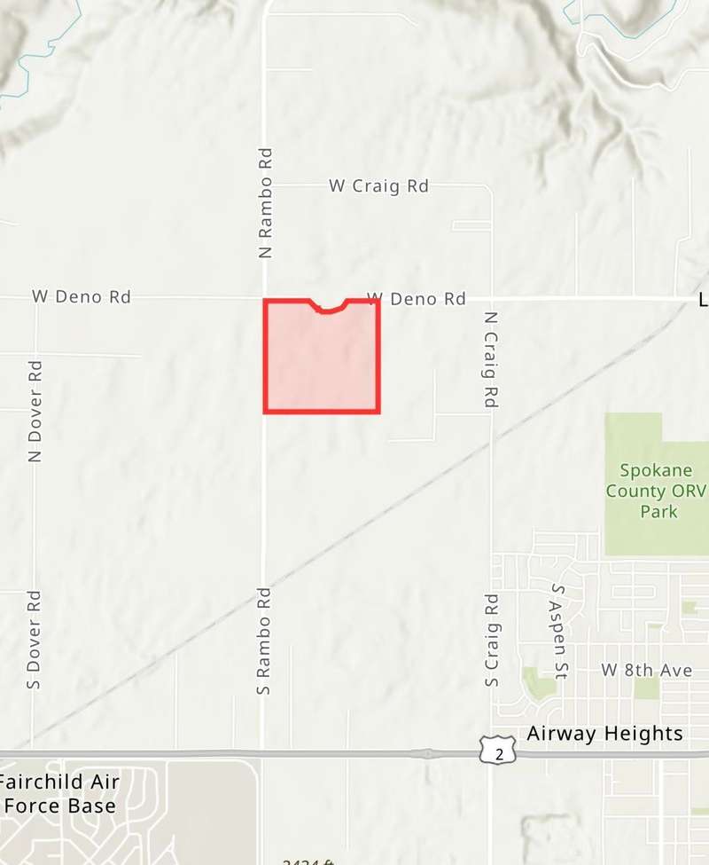 Investors & Developers take notice. Right on the corner of Rambo & Deno road, this beautiful 152 acre lot is for sale! Opportunity Abounds! This beautiful parcel is one of the largest lots you will find located just outside of Airway Heights and close to Spokane. Zoned RT - Density: The density of the Rural Traditional category is one (1) dwelling unit per 10 acres. Divide into 14 to 15 lots possibly.