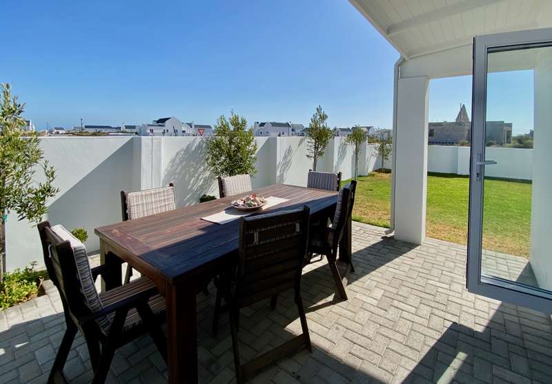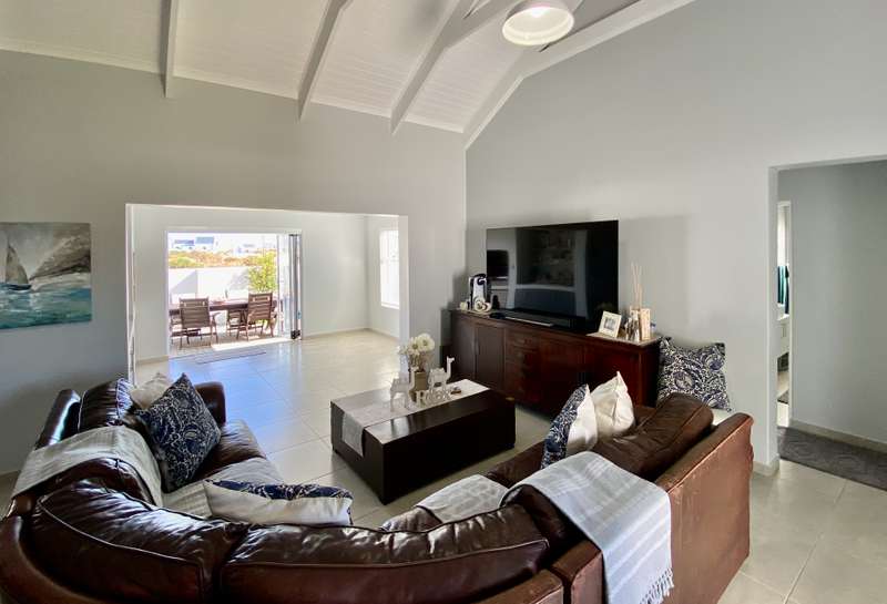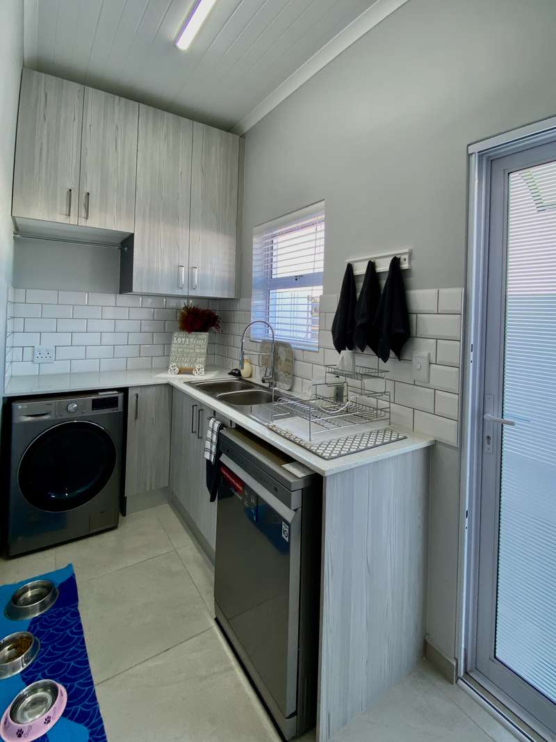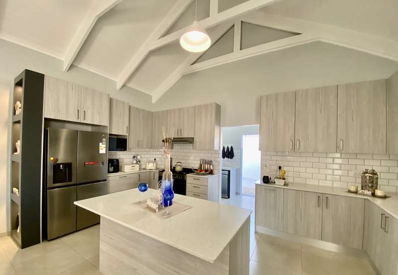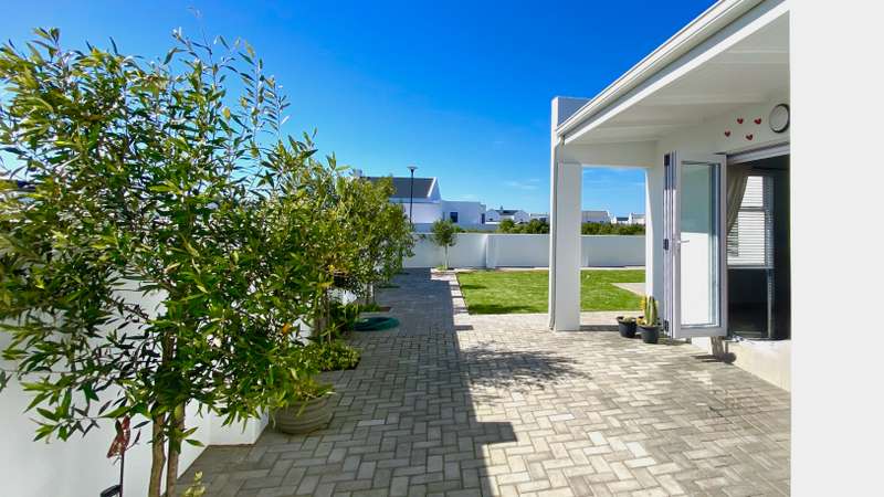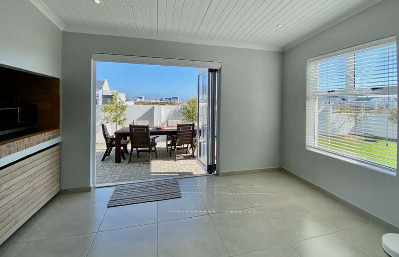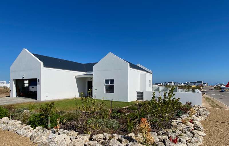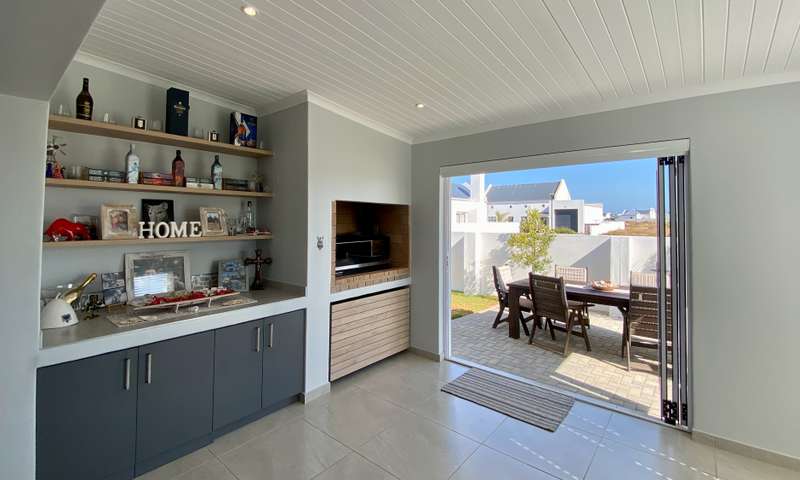 Elegant and contemporary home for sale in Atlantic Waves Estate This large, exquisitely designed home, located in a gated community in Velddrif, This Home offers the ultimate lock-up-and-go lifestyle, making it the perfect place to live year-round or as a permanent residence. It features a dedicated braai room with stacker doors that open to a sunny north-facing patio, vaulted ceilings with exposed trusses, engineered stone countertops throughout, and a modern kitchen that is a chef's paradise, complete with a 900mm gas stove with an electric oven, a clean subway tile backsplash, plenty of cabinetry, a walk-in pantry, and a separate scullery with a laundry nook. The residence includes three spacious bedrooms with ample closet space, and the master suite offers a private en-suite bathroom. Both bathrooms feature floating vanities and premium fittings, while the full family bathroom includes a luxurious walk-in shower. Additional highlights include air conditioning, a gas geyser, and neutral finishes that complement any décor. Outside, the fully fenced backyard is a private sanctuary, replete with a groomed garden, olive trees, and a borehole for irrigation. The enormous automatic double garage allows direct access to the residence, assuring convenience and security. This property's practicality and low-maintenance attractiveness are further enhanced with security gates on external doors, blinds on all windows, and other well-considered features. Don't pass up this fantastic chance to acquire a contemporary beachfront property in one of the most desirable communities in Velddrif. To schedule a viewing and begin living the seaside lifestyle of your dreams, give us a call right now! For a private showing, get in touch with us right now!