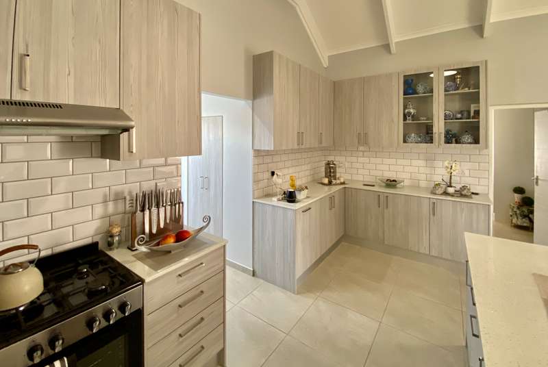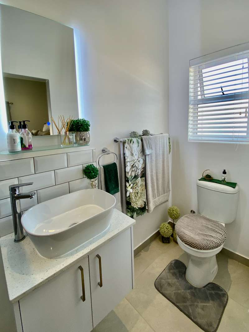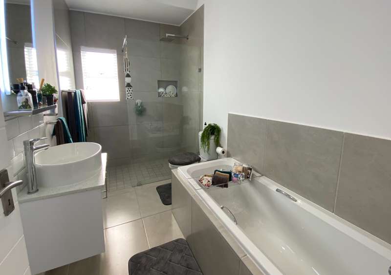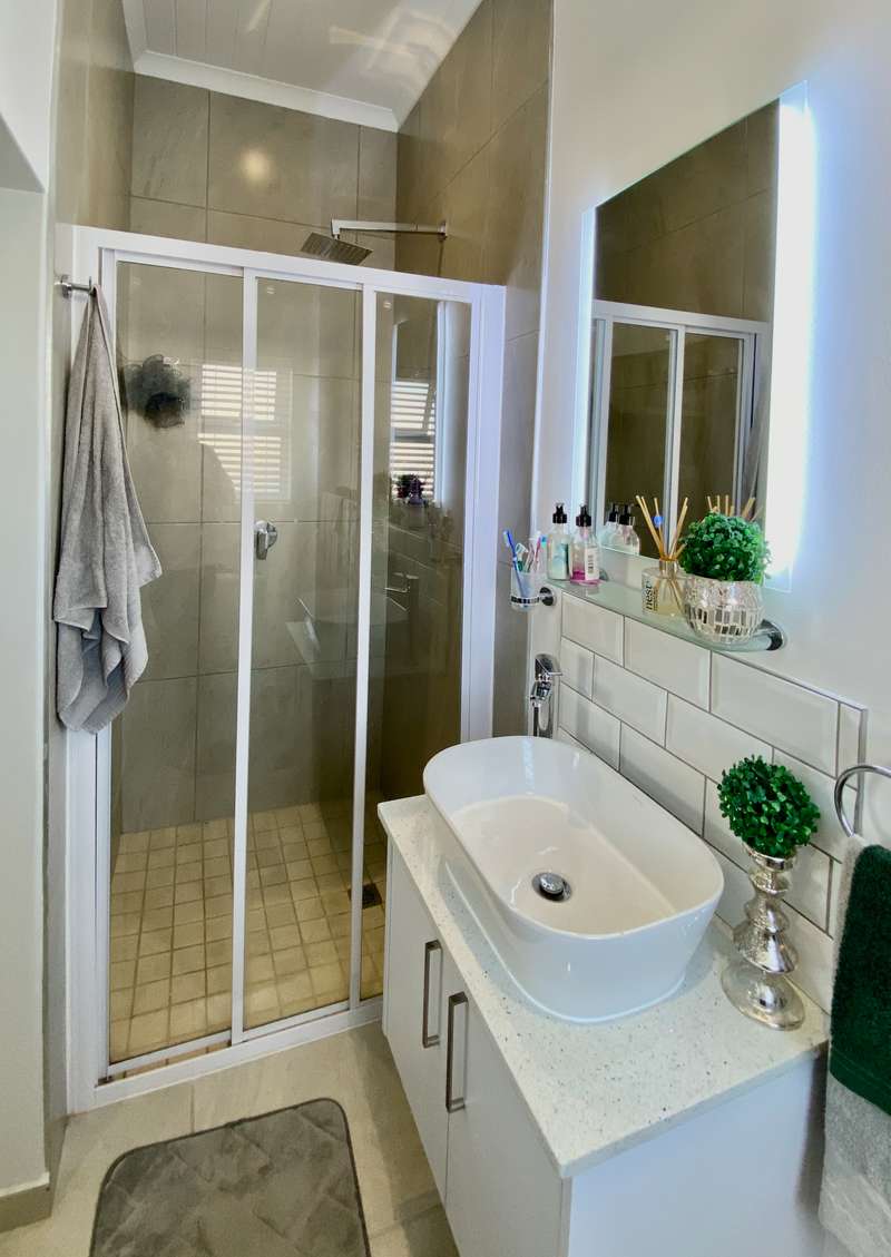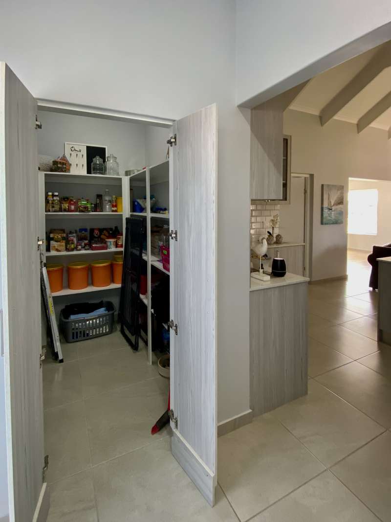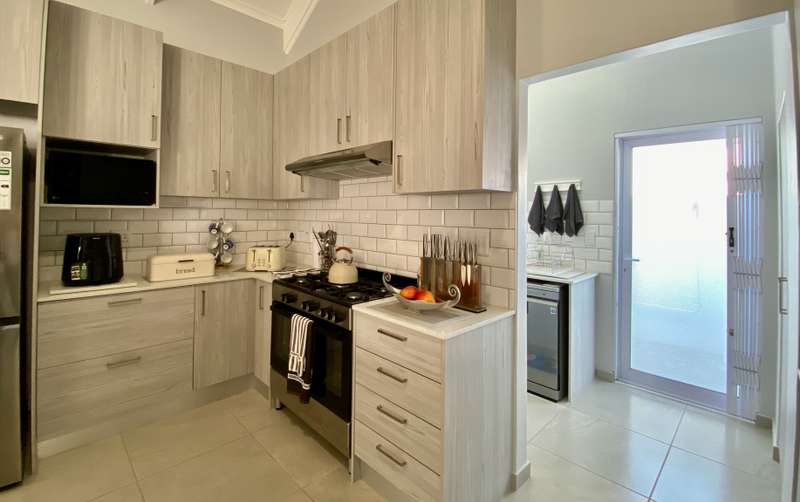 Elegant and contemporary home for sale in Atlantic Waves Estate This large, exquisitely designed home, located in a gated community in Velddrif, This Home offers the ultimate lock-up-and-go lifestyle, making it the perfect place to live year-round or as a permanent residence. It features a dedicated braai room with stacker doors that open to a sunny north-facing patio, vaulted ceilings with exposed trusses, engineered stone countertops throughout, and a modern kitchen that is a chef's paradise, complete with a 900mm gas stove with an electric oven, a clean subway tile backsplash, plenty of cabinetry, a walk-in pantry, and a separate scullery with a laundry nook. The residence includes three spacious bedrooms with ample closet space, and the master suite offers a private en-suite bathroom. Both bathrooms feature floating vanities and premium fittings, while the full family bathroom includes a luxurious walk-in shower. Additional highlights include air conditioning, a gas geyser, and neutral finishes that complement any décor. Outside, the fully fenced backyard is a private sanctuary, replete with a groomed garden, olive trees, and a borehole for irrigation. The enormous automatic double garage allows direct access to the residence, assuring convenience and security. This property's practicality and low-maintenance attractiveness are further enhanced with security gates on external doors, blinds on all windows, and other well-considered features. Don't pass up this fantastic chance to acquire a contemporary beachfront property in one of the most desirable communities in Velddrif. To schedule a viewing and begin living the seaside lifestyle of your dreams, give us a call right now! For a private showing, get in touch with us right now!