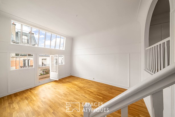The location on a high floor with elevator, the brightness, spaciousness, and charm make this authentic artist's studio a unique and very rare property.