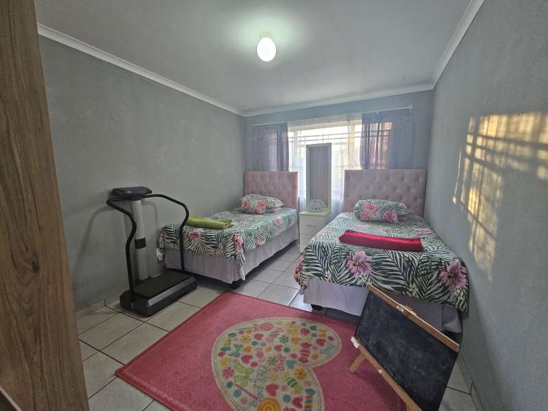 Experience modern living in this spacious duet located in the heart of Fauna. This charming home boasts an open-plan lounge and dining area, perfect for entertaining and family gatherings. The sleek, contemporary kitchen is a chef's delight, featuring modern appliances and ample storage space. With three generously sized bedrooms and two stylish bathrooms, this home offers comfort and privacy for all family members. The small yard is perfect for outdoor relaxation, gardening, or a play area for children. Additionally, the property includes a double carport and two Wendy houses, providing extra storage or potential for creative use. Enjoy the perfect blend of modern amenities and cozy living in this delightful duet home.