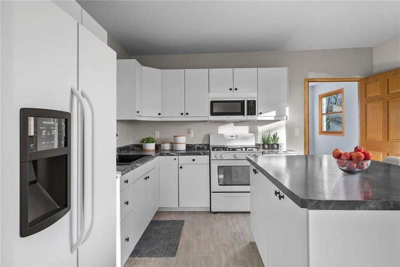 Set on 1.66 acres just outside of town, this home has been completely transformed w/a lull studs-out renovation. The layout includes a main-floor bedroom & bath, an updated kitchen w/all new systems, and two additional bedrooms plus a refreshed bathroom on the upper level. New roof, windows where needed, electrical, plumbing, kitchen, bathrooms, and boiler provide long-term peace of mind, with all mechanicals. The unfinished 828 sq ft basement includes an egress window & laundry hookups, offering room to expand. A covered front porch adds a welcoming touch, and the updated detached two-car garage provides extra storage and workspace flexibility. Outdoor surroundings offer a rural setting with quick access to recreation, local lakes, & travel routes. Trade Lake lies nearby for water access, and Crex Meadows Wildlife Area is just a short drive for trails, birding, and year-round outdoor activity. Ideal for buyers seeking a renovated home with land & access to natural amenities.