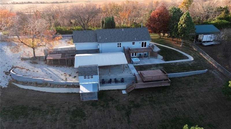 Welcome home to this beautiful 4-bedroom ranch/reverse nestled on 3 peaceful acres just outside of town. Step inside to find a warm, open layout with vaulted ceilings, a stone fireplace, and plenty of natural light that makes the great room feel like a cozy retreat. The updated kitchen shines with quartz countertops, a large island, and stainless steel appliances — perfect for cooking, entertaining, or gathering with friends. The primary suite has been tastefully updated, offering comfort and modern style. Downstairs, the finished walkout lower level adds even more living space for movie nights, hobbies, or guests. Outside, you’ll love the expansive deck with nearly 40-mile views — the perfect backdrop for a morning coffee or evening sunset. A 2-car garage connects to the home, plus a newer large carport addition out back that’s ideal for parking, storage, or even transforming into a festive party space. The backyard playground is a true country retreat — complete with a double firepit area, outdoor wet bar crafted from a repurposed grain silo, and plenty of room to roam. Bring your animals too! A chicken coop, storage shed, and covered/enclosed outdoor animal area are all ready for you. This gated property offers the best of country living — privacy, charm, and unbeatable views — yet it’s still close to town conveniences. By appointment only. Contact the listing agent today for details or to schedule your private showing!