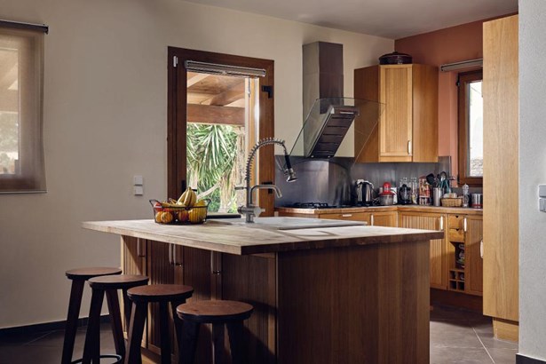 - Kitchen area with a built-in kitchen and oven and fitted extractor far