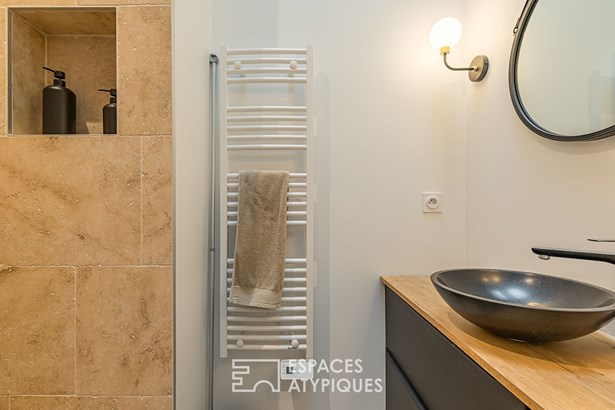 The living area revolves around a bright living room, open to the outside, offering a peaceful setting and a beautiful perspective of the surrounding cityscape. The functional and inviting kitchen blends seamlessly into this fully open space. The quiet and well-proportioned bedroom provides a true haven of privacy with ample storage. A modern travertine shower room and a separate WC complete the apartment. With its fluid layout, charm, and ideal location close to shops, transport, and schools, this apartment combines comfort, convenience, and a prime location.