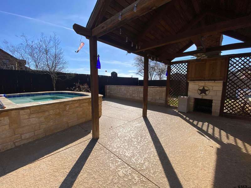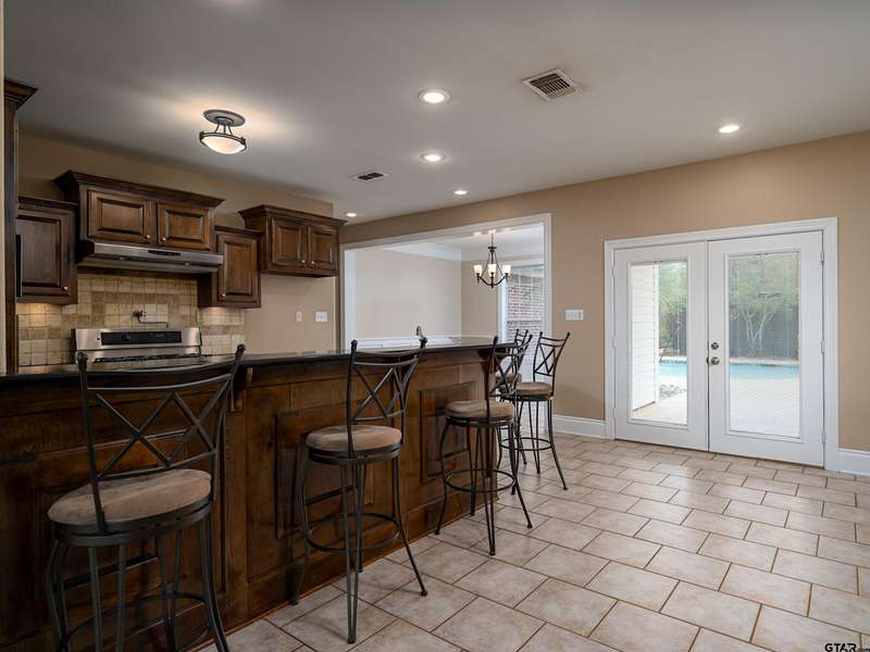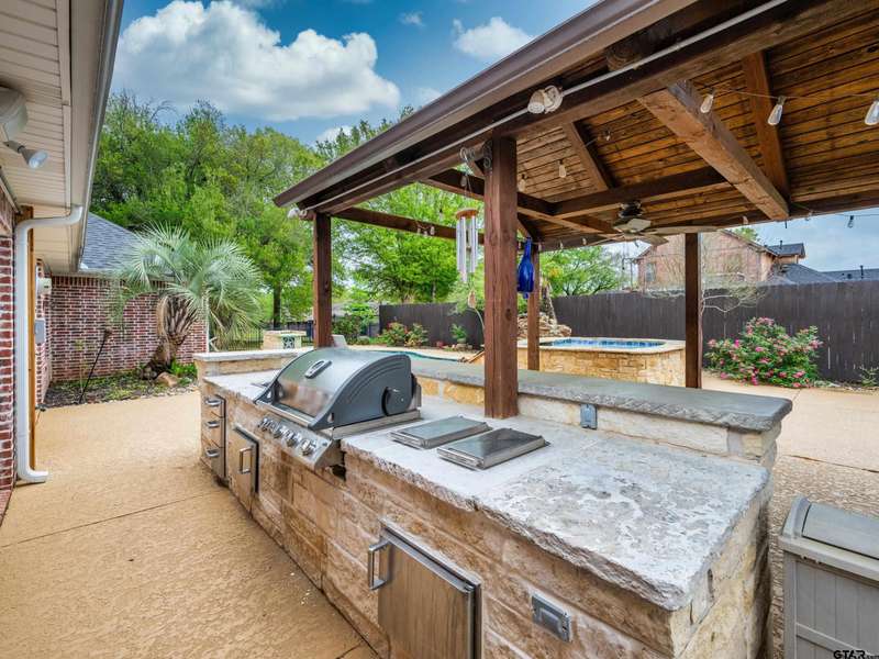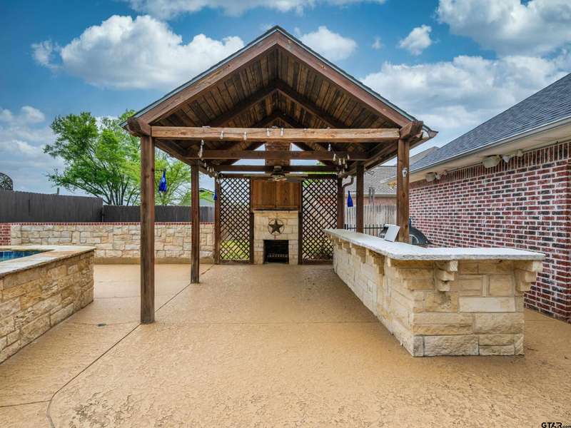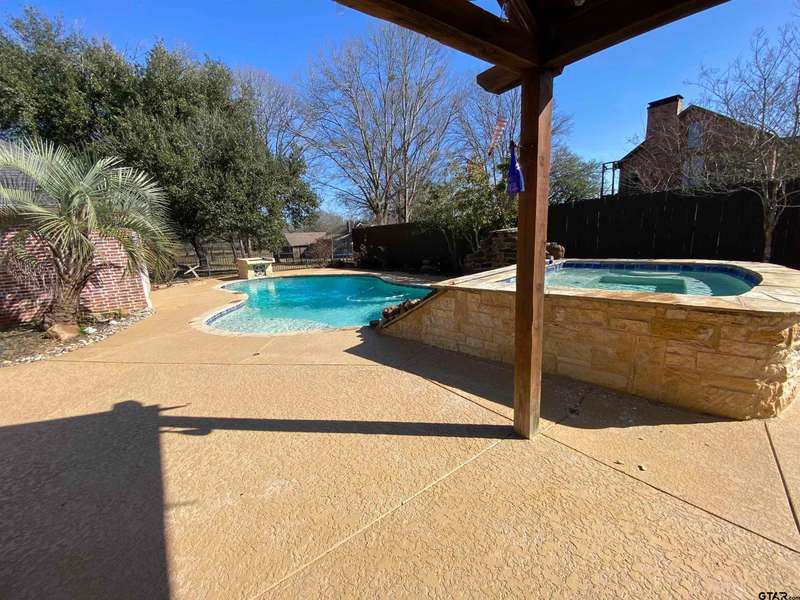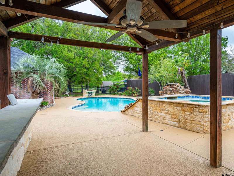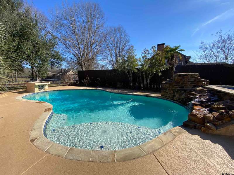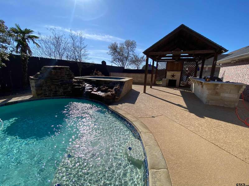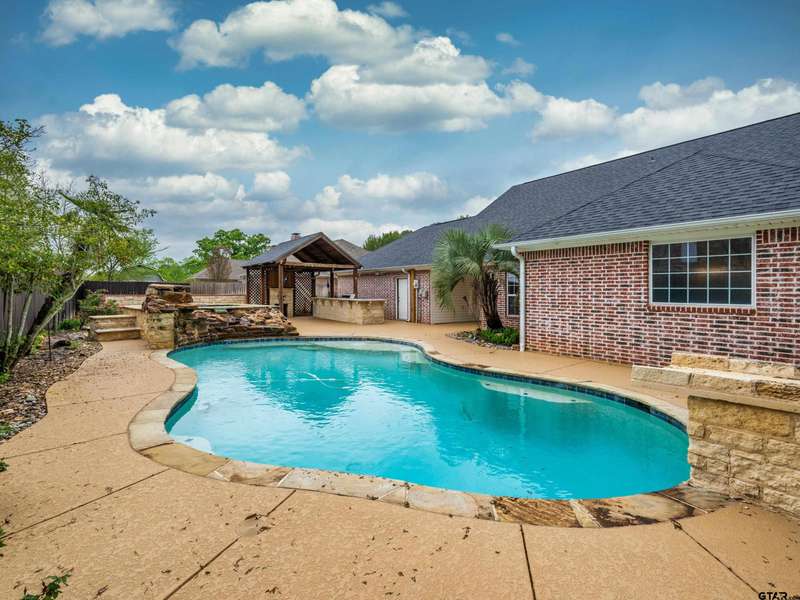 Beautifully built and well-maintained custom home with brick and stone exterior located in The University Hills subdivision of Jacksonville. This 4 Bedroom, 3 Bath home includes over 2,800 square feet of living space and sits on approximately .49 acres. Great floor plan with a large living area moving into the open kitchen with a convenient bar top ideal for casual dining or entertaining guest attached dining room offers an elegant space for formal meals, making this home perfect for both everyday living and special occasions. You'll love the fireplace and custom trim work throughout this home. This home has a total of three bedrooms downstairs and the fourth large bedroom with its own bathroom upstairs. The Main Suite boast a private en-suite bath that has not only a shower but also a huge soaking tub and a walk-in closet with amazing built ins. The back yard is all about outdoor entertainment, featuring an outdoor kitchen with a stainless grill and two gas burners on the side, lots of countertop space, beautifully built cabana, outdoor fireplace with tv mounted above it, hot tub, gunite swimming pool and waterfalls at both ends of the pool that you can control from your cell phone. You'll also find extra storage with a wall of custom cabinets in the garage.