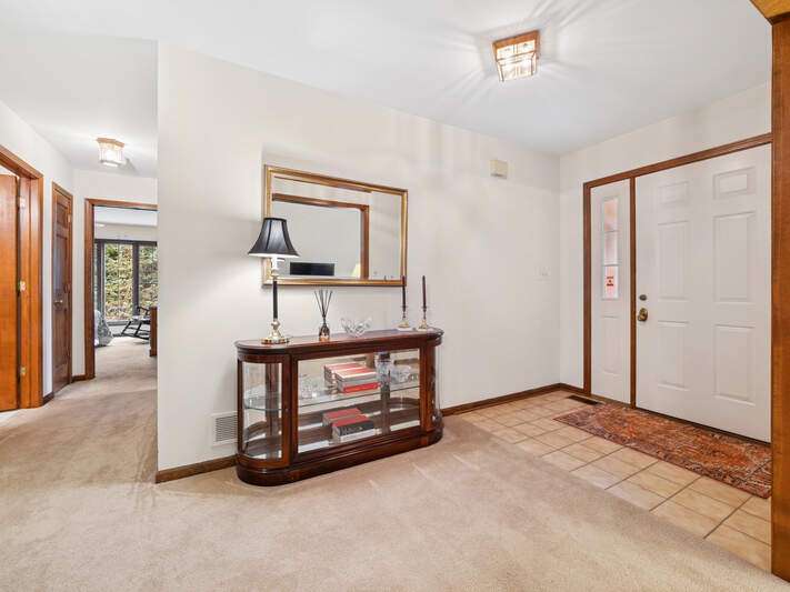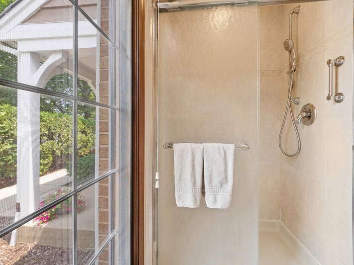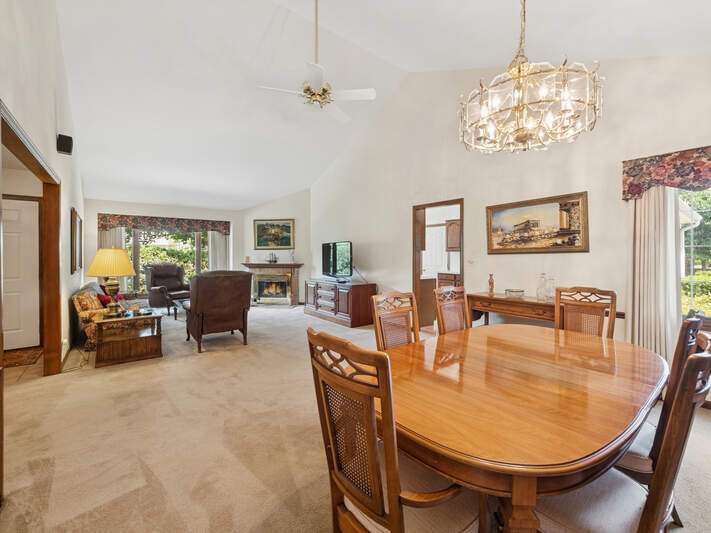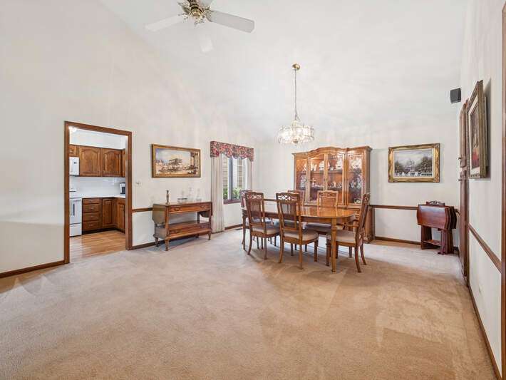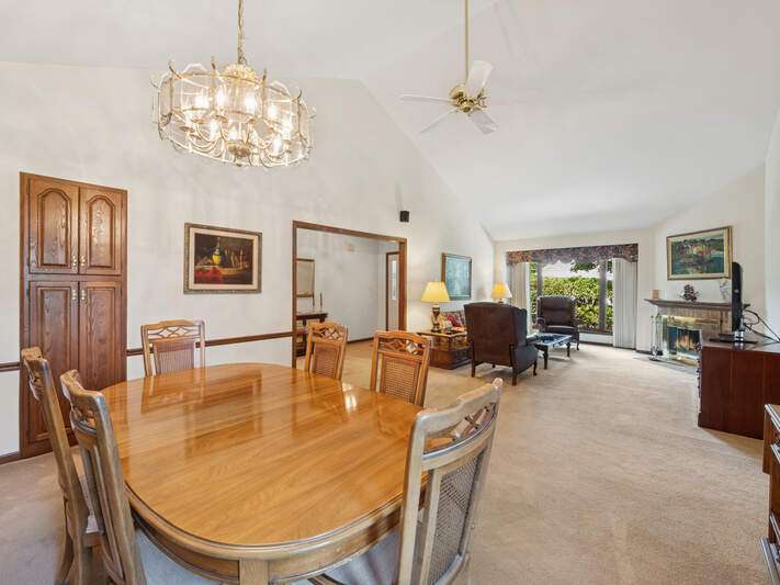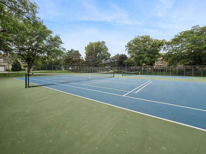 Highly desirable ranch townhome in the Shires of Inverness! Enjoy maintenance free living in this end unit townhouse tucked in a quiet cul-de-sac. Fantastic floor plan features a gracious welcoming foyer, large and dramatic 32 x 15 living room/dining room combination with soaring cathedral ceiling and wood burning fireplace, eat in kitchen with good cabinet and counterspace, private primary suite with remodeled bathroom and abundant closets, second bedroom and tastefully remodeled hall bath. The full basement is finished with a large recreation room, the third bedroom, another full bathroom and is perfect for relaxing or overnight guests. A large laundry room features extra closet storage plus there is a huge storage room. This friendly community has an outdoor pool, clubhouse and tennis court and is close to shopping, restaurants, Harper College, and the expressway.