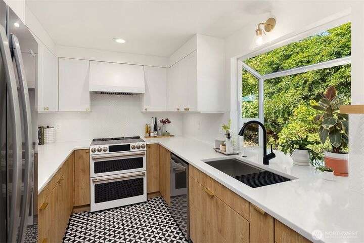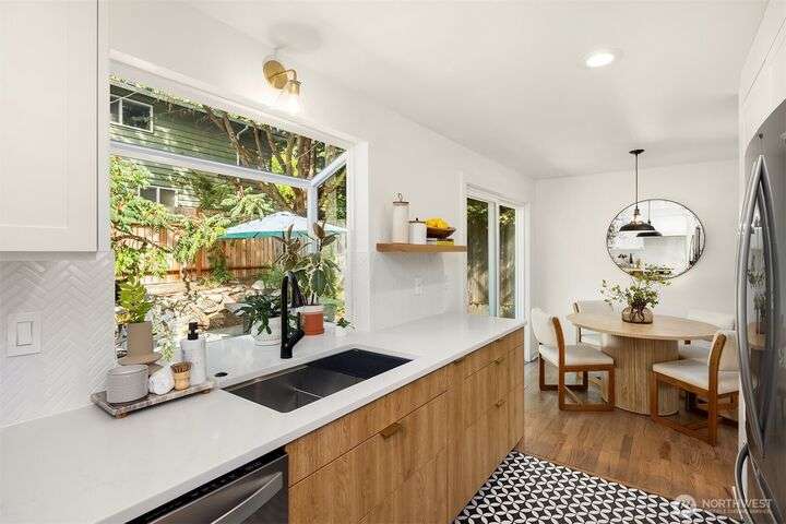 Welcome to this adorable home in Haller Lake! This cheerful 3-bedroom, 1-bath rambler sits on an oversized peaceful and private lot. Inside, you’ll love the beautiful and stylish updated kitchen, with quartz counters, new cabinetry and appliances, remodeled bathroom, generously sized bedrooms, and cool comfort with A/C. Gardeners will swoon over the fully fenced yard with fruit trees and mature plantings. The large patio is perfect for summer BBQs, while the new roof, new water line, new plumbing and 1-car garage check the practical boxes. Easy access to Northgate Light Rail Station, Northwest Hospital and I5. Not to mention summer fun at the lake minutes away. Don’t miss this sweet spot!