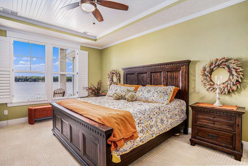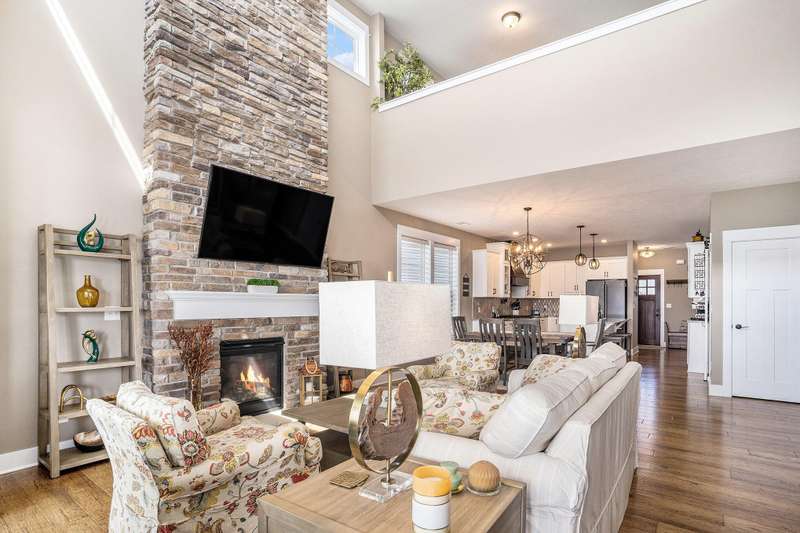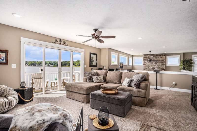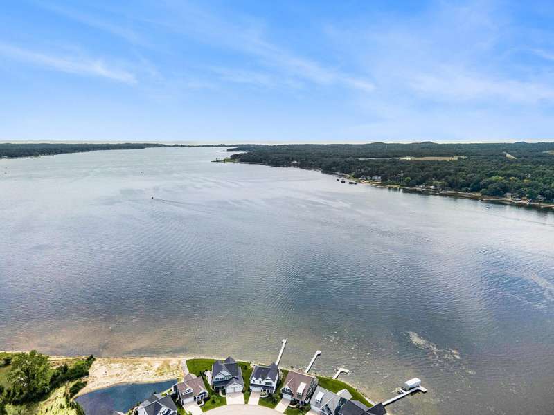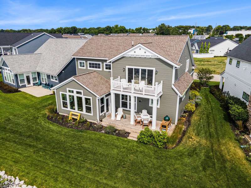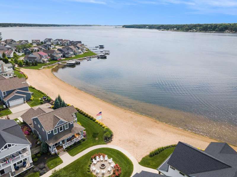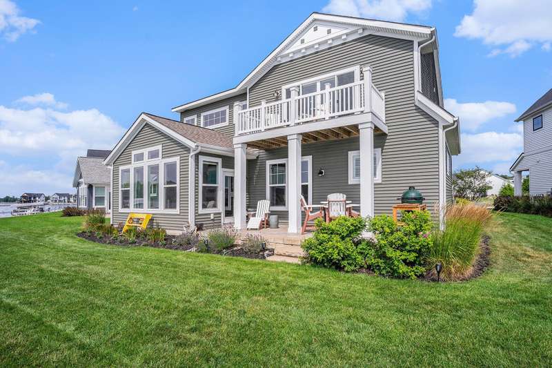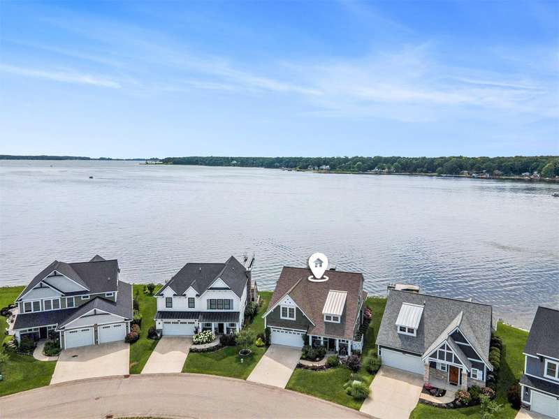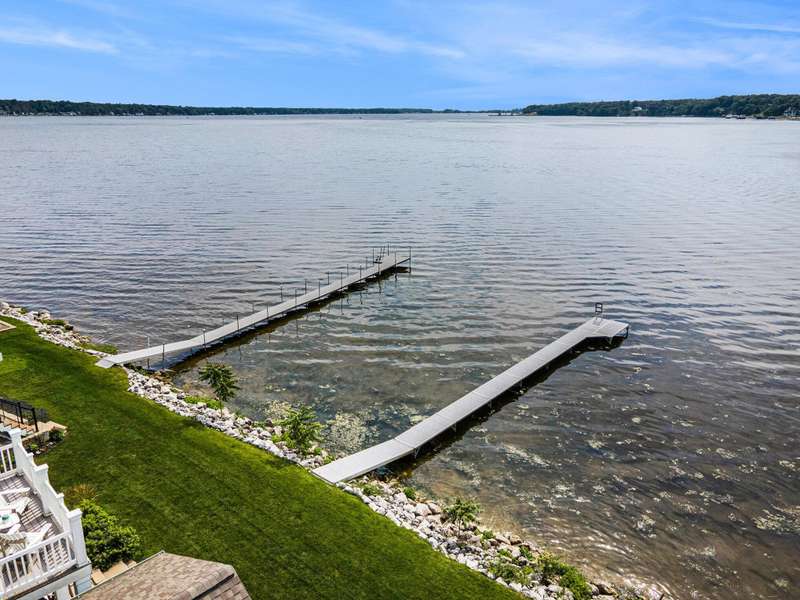 New Price!! Just in time for the Holidays! Spectacular Waterfront Home with deep water access to Lake Michigan offers the perfect blend of style and lakeside living. With an open concept and a cottage living feel, this FULLY FURNISHED lakefront home is ready for IMMEDIATE ENJOYMENT! There simply is no better way to end the day! The expansive windows provide breathtaking views of the water. The spacious kitchen is equipped with high-end appliances, granite countertops and an extra large island for entertaining. Spectacular, two story stone fireplace in the living room. Primary suite and laundry on the main floor. 2 bedrooms, full bath, another living room w/ wet bar and balcony on the second story. Sunsets are beautiful here. Every detail in is place for effortless lakefront living! Stamped concrete covered patio provides comfort and enjoyment of hot summer days. Oversized 2 car garage with extra over head storage space. Patio furniture, 100' of dock, Traeger smoker grill, and large Green Egg grill are among the furnishings included.