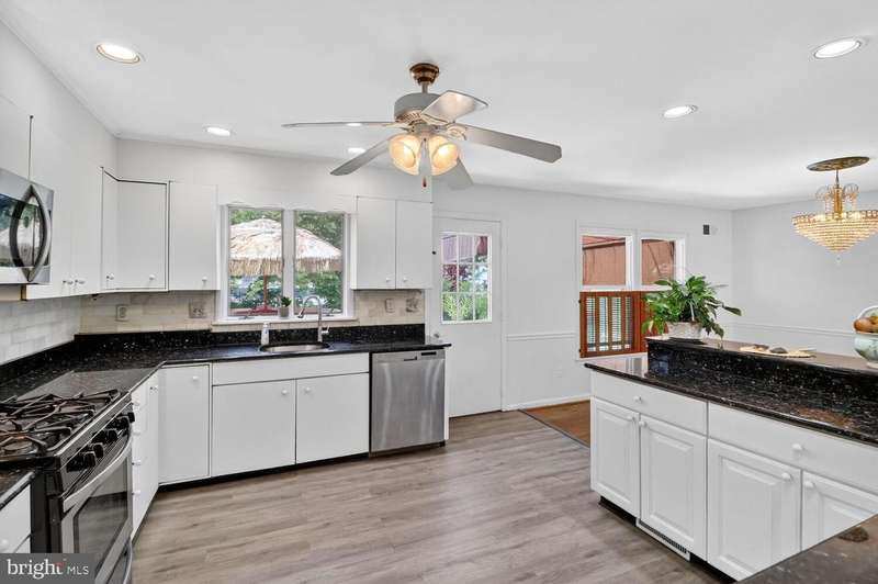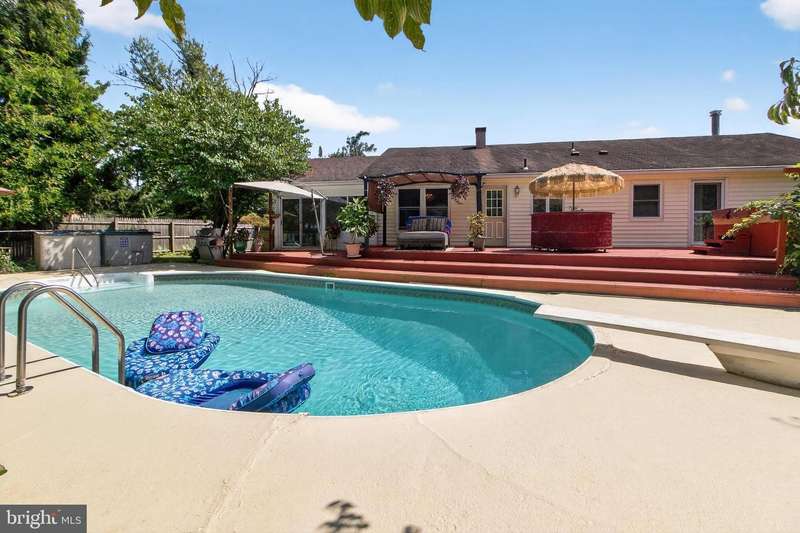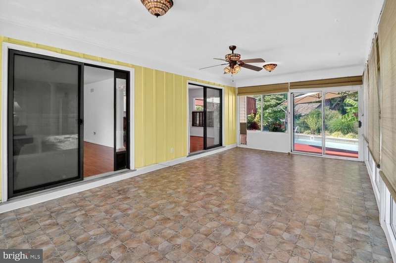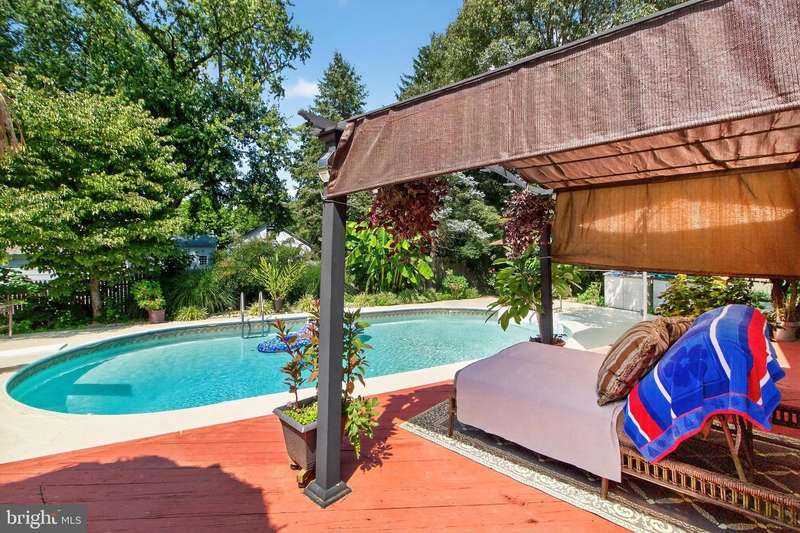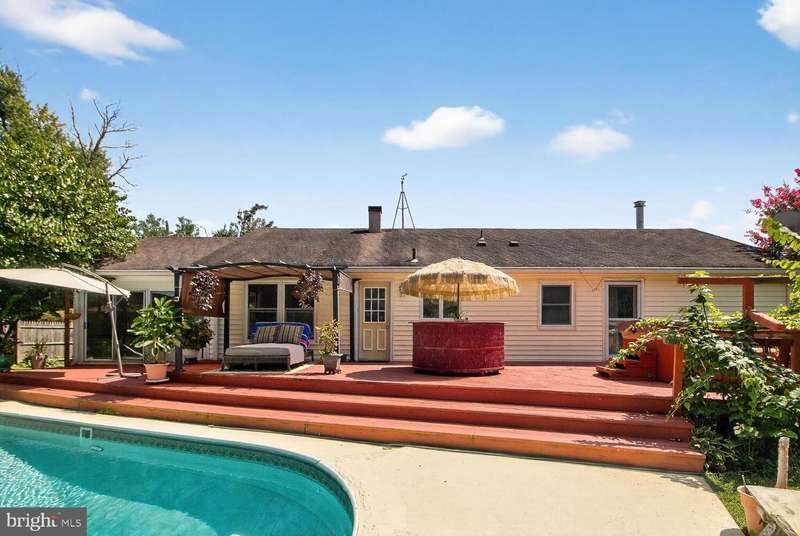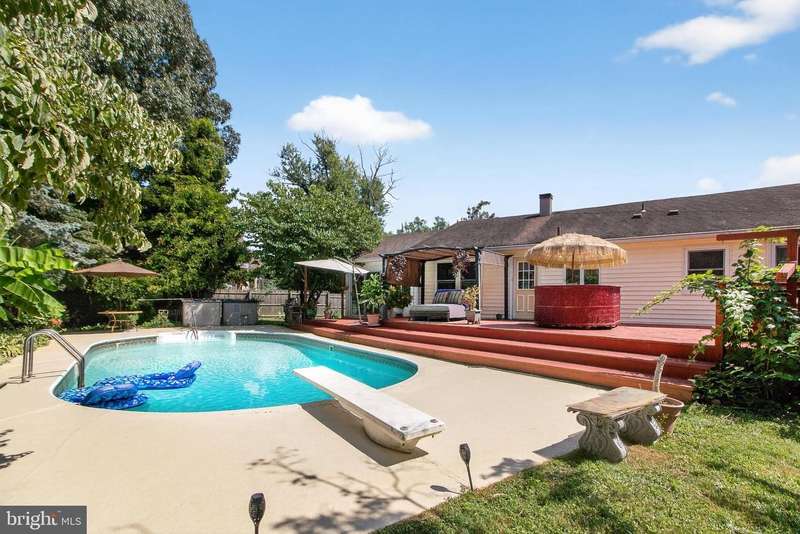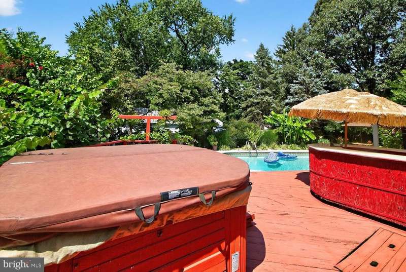 Very spacious split foyer with a resort-like yard. The main level includes spacious living room, updated kitchen, featuring granite countertops and stainless steel appliances which opens to the dining room. There is also a large sunroom. The main bedroom includes a newly renovated full bath (2024) with travertine tile shower and floor, along with new cabinet and fixtures. There are also two additional bedrooms and a hall bath. The lower level boasts a large recreation room with a gas stove and vintage inspired bar, greenhouse, additional room that can serve as a potential fourth bedroom, a utility-laundry room, and a one-car garage. The fabulous fenced rear yard includes a pool, a covered lounge area, a tiki bar, and a hot tub, evoking a tropical paradise atmosphere. Heating and A/C unit rebuilt ('25). A real beauty! (Note sq footage in tax record appears to not include lower level rec room and additional finished room - feel free to measure)