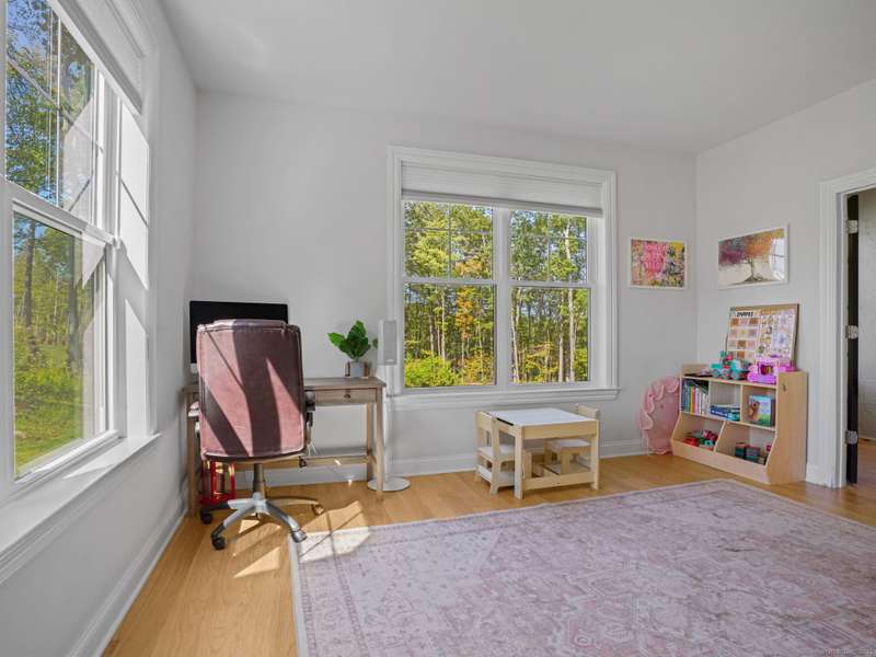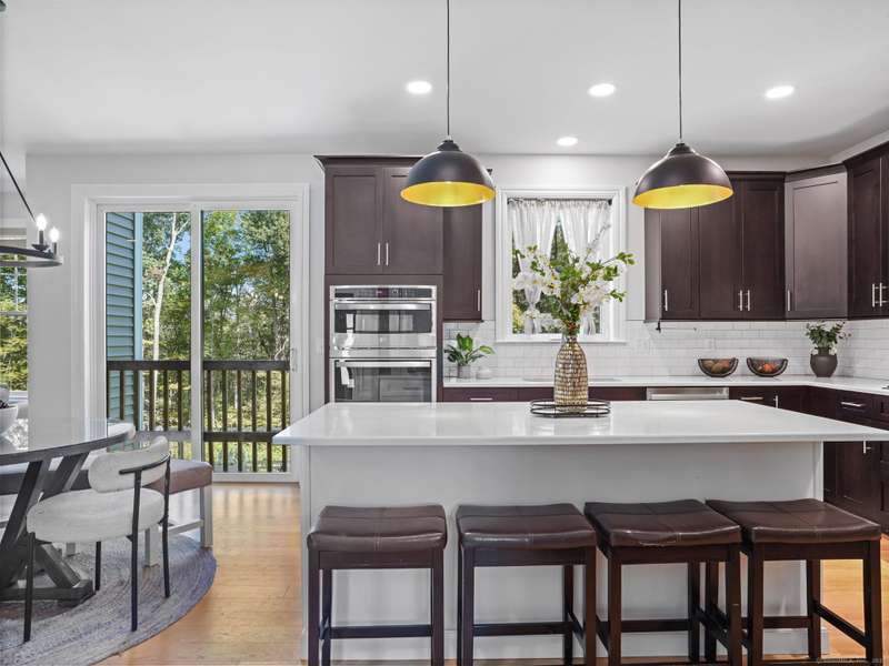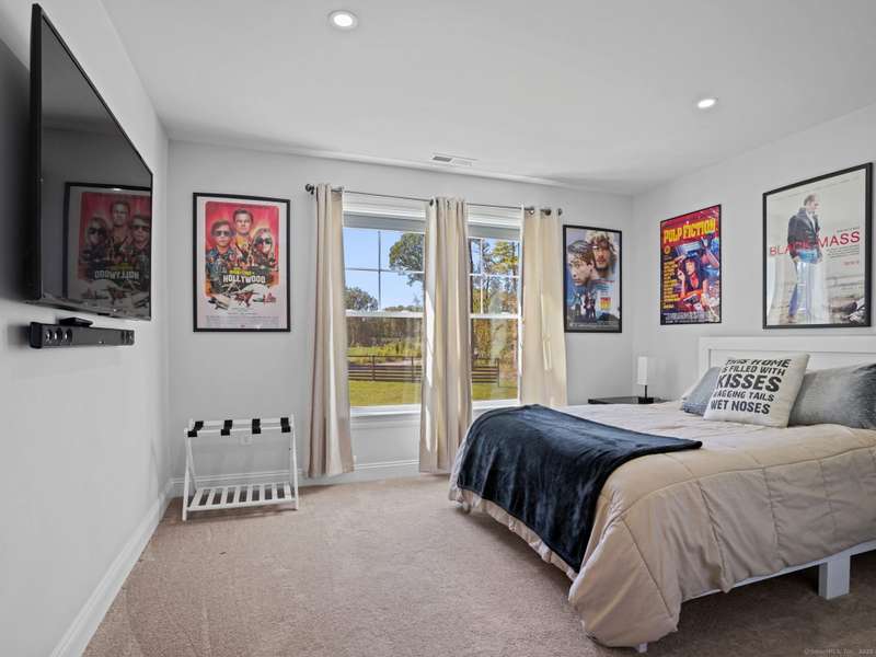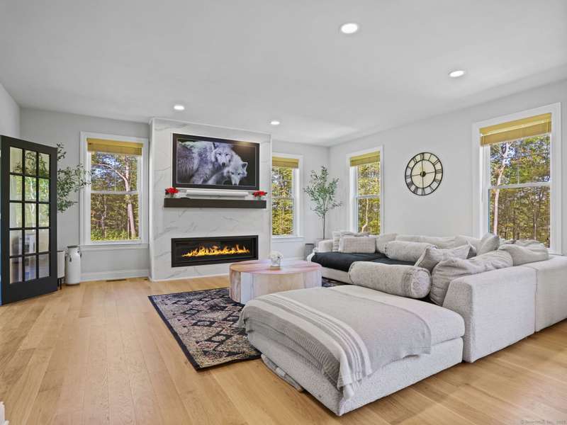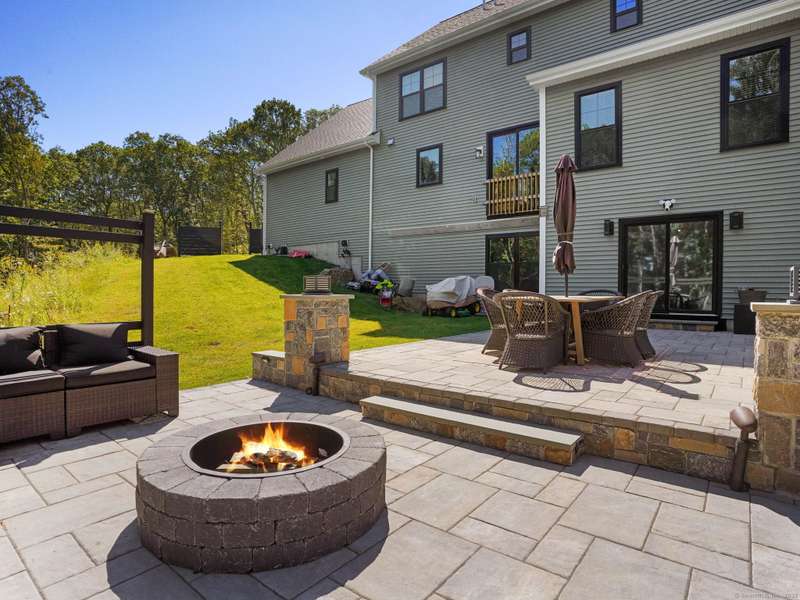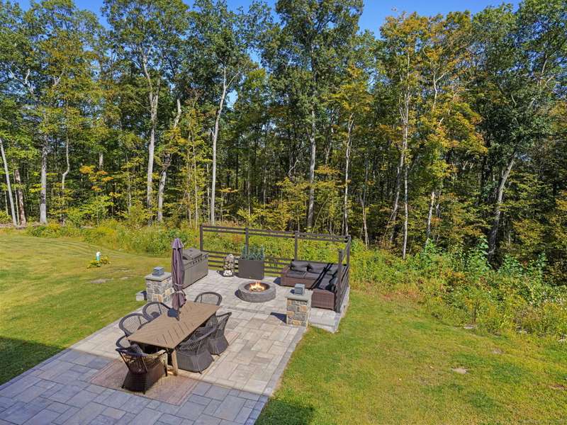Welcome to 308 Vista View Drive! This stunning Colonial, built in 2023 by EG Homes, is privately set on 4.5 acres at the end of a cul-de-sac. Combining modern design and custom upgrades, enjoy the peace of mind that comes with a newly constructed home. A brand-new granite curbstone walkway leads you to the front entry, opening into a two-story foyer filled with natural light. The 2-car attached garage with epoxy flooring and built-in speakers connects to a practical mudroom with powder room, pantry, and closet. The heart of the home is the eat-in kitchen, featuring quartz countertops, Bosch refrigerator, and built in coffee bar. Host gatherings in the formal dining room, and relax in the spacious living room by the striking linear gas fireplace with a custom floor-to-ceiling accent wall. A versatile bonus room offers the perfect space for a home office, den, or playroom. Upstairs, the primary suite includes a spa-like bathroom and walk-in closet. Three additional bedrooms share a second bath with upgraded tile and fixtures, plus a convenient hallway laundry room. The walk-out lower level provides incredible potential and opens to a thoughtfully designed stone patio with a sunken fire pit-ideal for entertaining or quiet evenings outdoors. With new construction benefits including home warranties, modern finishes, energy-efficient systems, and low maintenance, this home is truly turn-key!