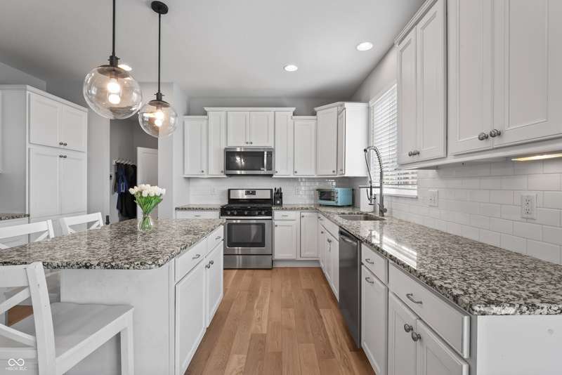 Welcome to this stunning 4-bedroom, 3.5-bath home [WITH FINISHED BASEMENT] - thoughtfully updated with the perfect mix of comfort, function, and charm. Just one mile away from new/up and coming McCord Square -Enjoy new hardwood floors throughout the first floor, custom built-in shelving surrounding the cozy fireplace, and classic shutters that elevate the curb appeal and add timeless charm. The finished basement was thoughtfully designed for both kids and adults-complete with a built-in bar and fridge, a full bath, and plenty of storage space. Upstairs, the bedrooms are spacious and bright, complete with a catwalk overlooking the cathedral-style 2 story living room. Step outside to a large patio perfect for outdoor dining or lounging under the gazebo, all within a rod iron-fenced yard that overlooks a peaceful pond-no houses directly behind you! This home is ideal for everyone and anyone who loves to entertain. This home truly has everything you need - space for family, room to entertain, and thoughtful upgrades that make everyday living easy and enjoyable. Oversized 6ft bump on the rear of the finished garage with massive ceilings and elongated room for vehicles.