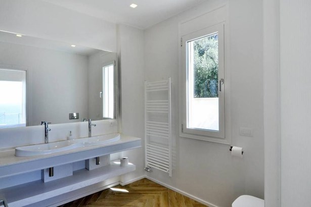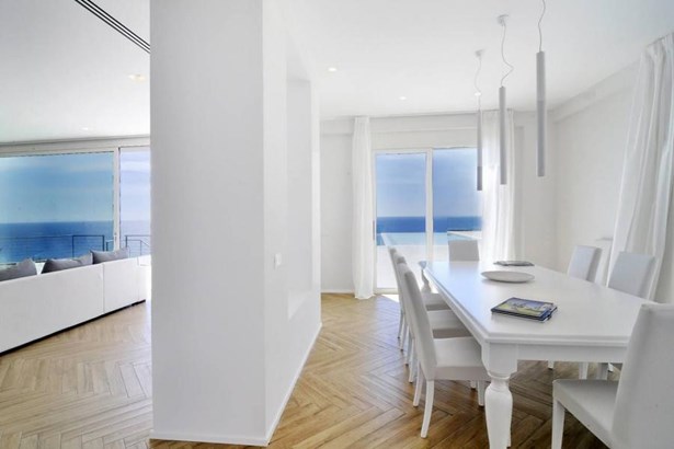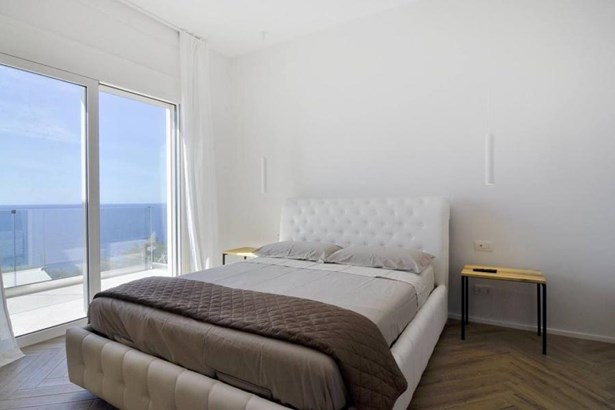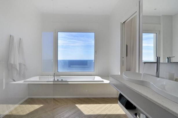 The top floor features 3 bedrooms all with en suite bathrooms and is accessed through a staircase with wooden steps. The bedrooms feature balconies which are protected with glass panels to provide uninterrupted sea views.