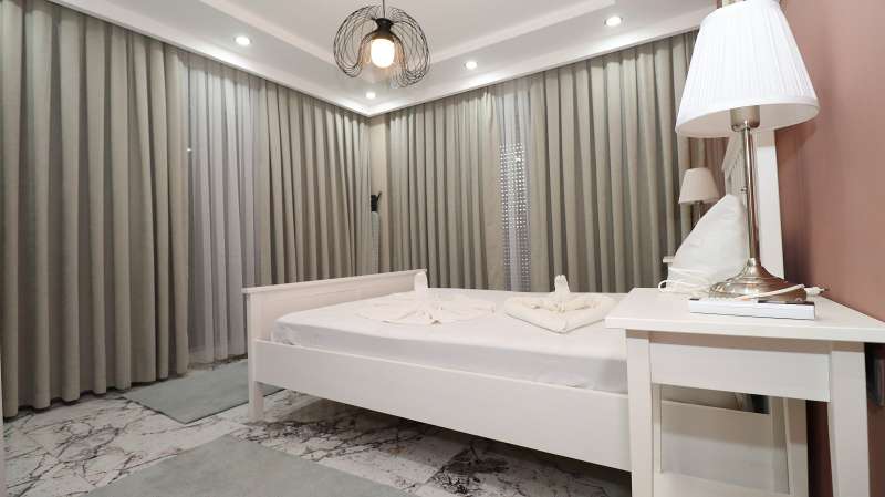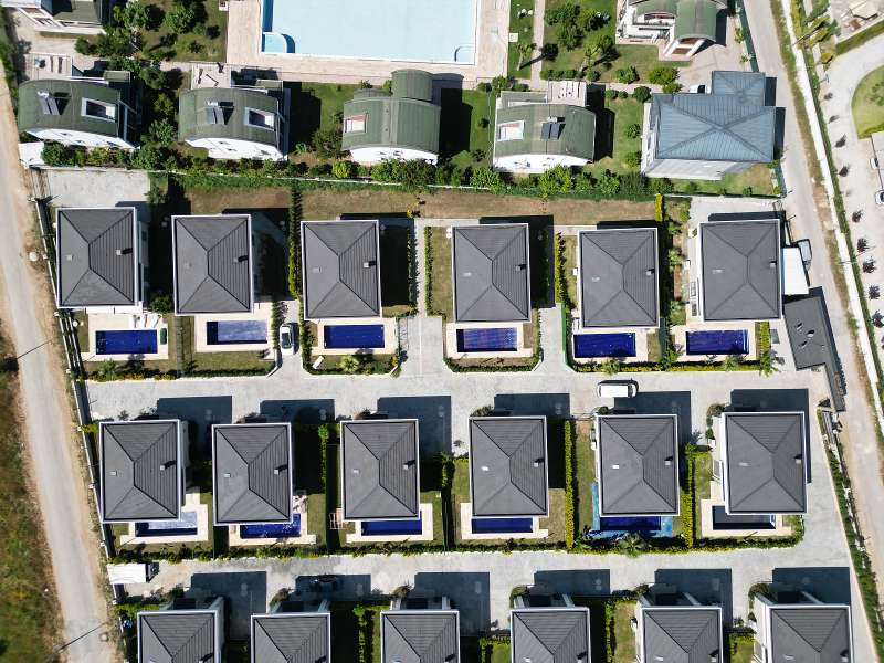 The villa for sale in Belek Turkey is 1 km away from amenities such as grocery stores and restaurants. The villa for sale is 200 m to the basketball court, 950 m to Turizm Caddesi, 1 km to the golf course, 5.9 km to Belek Public Beach, 8.7 km to Serik Bus Station, 28.5 km to Antalya International Airport, and 40 km to Antalya city center.