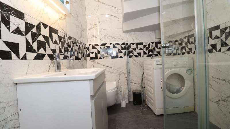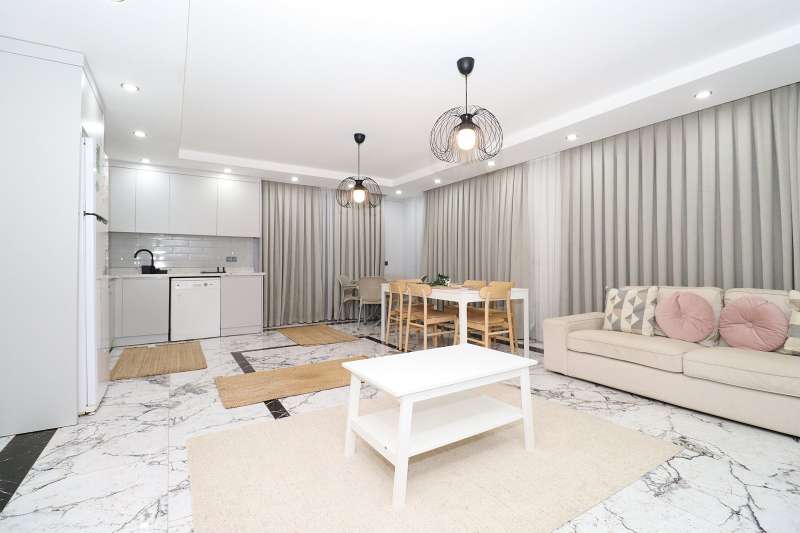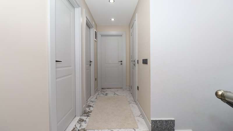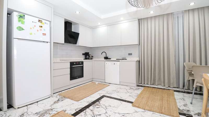 The villa offers a pleasant and quality life with its features such as steel door, electric shutters, furniture, white goods, built-in appliances, modern kitchen cabinets, spot and LED lighting, sensor lighting, lacquered room doors and internet access.