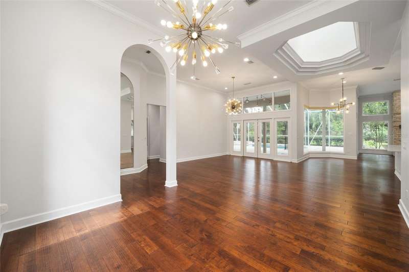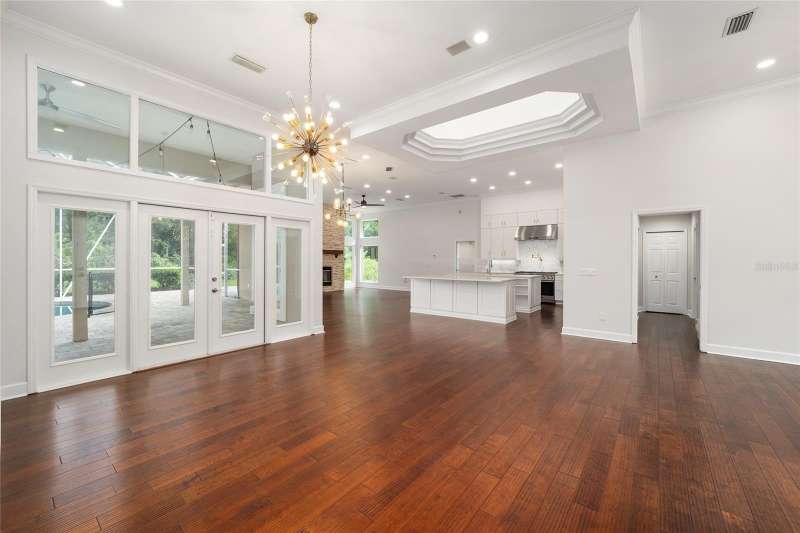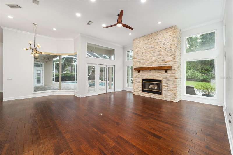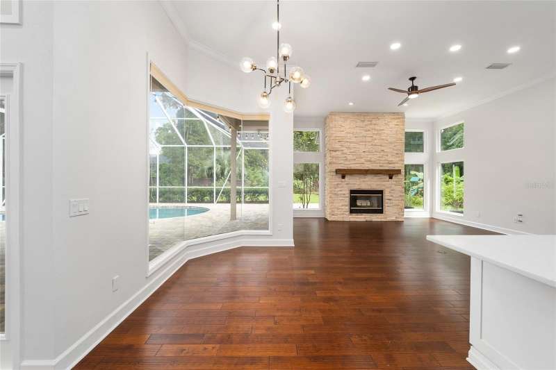Welcome to this stunning 5-bedroom, 4-bathroom home located in the vibrant city of Gainesville, FL. This property boasts a spacious 2-car garage and a private, fenced backyard, perfect for outdoor activities. The open floor plan allows for seamless transitions between rooms, creating a harmonious living space. The kitchen is a chef's dream, equipped with stainless steel appliances and a double island for ample preparation space. The home also features a bonus room, ideal for a home office or gym. The primary bedroom comes with a custom closet, offering plenty of storage. The gas fireplace adds a cozy touch to the living area, perfect for those cooler evenings. The property also includes a convenient laundry room with a dry sink. As an added bonus, lawn service is included, ensuring your outdoor space always looks its best. And let's not forget the swimming pool, a refreshing retreat for those hot Florida days. This home truly has it all!